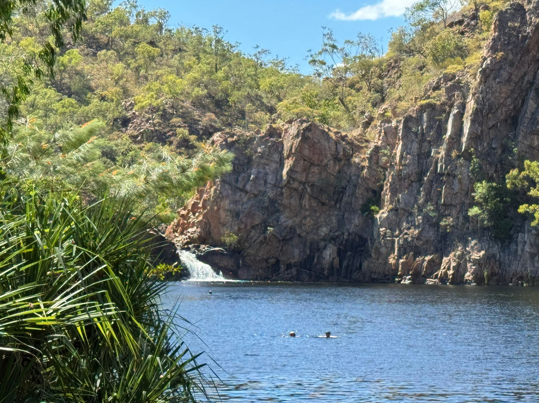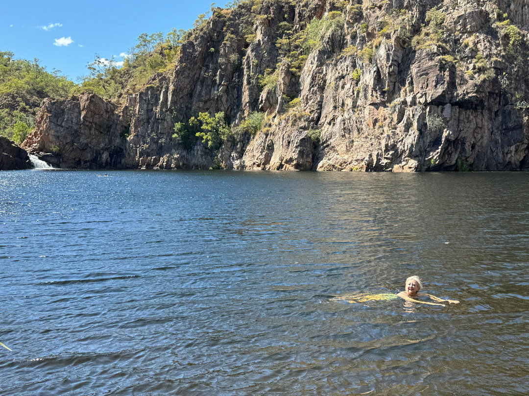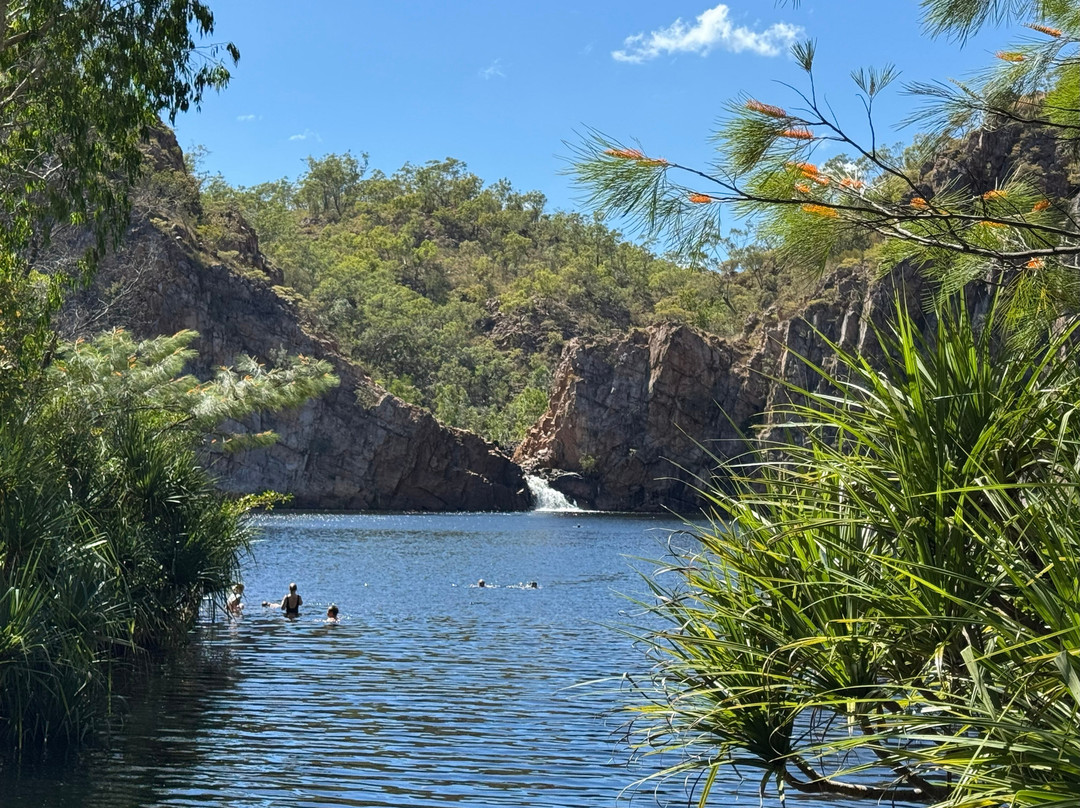 点评:Accessed at the end of the Edith Falls turn off from the Stuart Highway, this collection of pools is a wonderful spot for a scenic walk or scenic swim. A decent sized car park with a small café kiosk and a toilet block with changing facilities, it’s a short walk from here to the larger Edith Pools plunge pool and then a longer up hill walk to the smaller Edith Falls Upper pool. Both pools have waterfalls but the Upper one is more impressive in the Dry season.