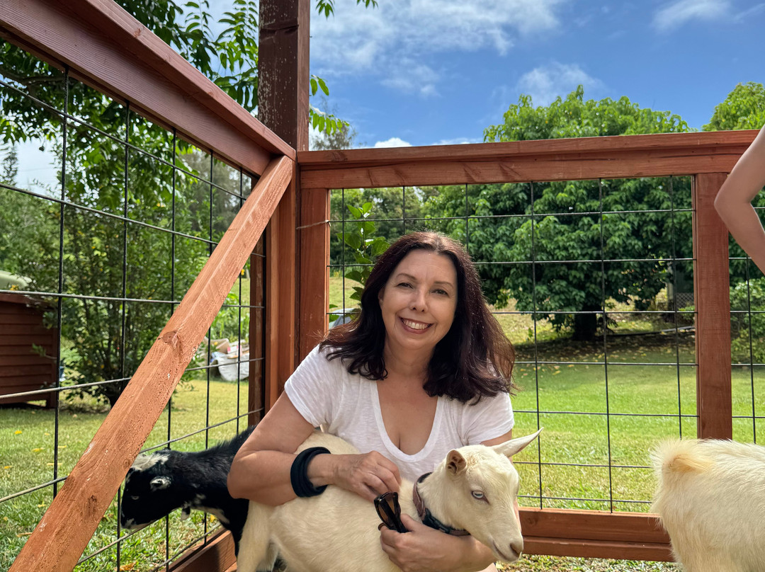 点评:808 Goat Yoga was the high point of our trip to Kauai. Perfect for die-hard yoga enthusiasts (my daughters) or novices (me). The class began with a warm welcome and short history of the Hawaiian islands and is held on the lawn under a large pergola. Participants were invited to focus on an intention, wish, or gratitude and information about the class and our goat partners was shared. The yoga instructor was excellent and provided instructions on how to adapt moves to match your skill level. Once the goats are released, it’s their domain. I loved petting, scratching and loving on the goats. Time is provided after class to interact with and take pictures with the goats. We then stowed our towels and cleaned our mats (both are provided) and headed into a charming, converted bus to do some shopping. I highly recommend anyone coming to Kauai to carve out some time for this unique, spiritual, and fun experience.