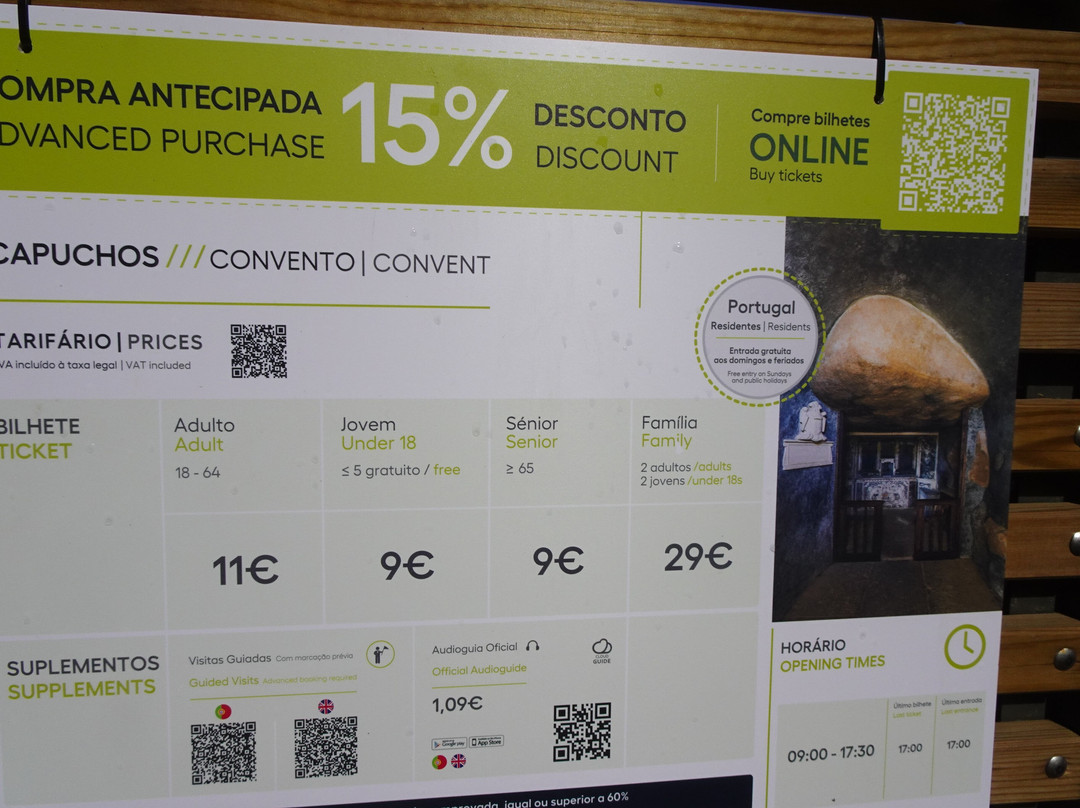 翻译:该修道院位于辛特拉山的茂密森林中。进入钟院后,我们看到了修道院的教堂和其他朴素的建筑。 八间由岩石部分雕刻或挖空的宿舍(最多可容纳八名僧侣)并没有为僧侣提供任何舒适感,因为软木很容易使用,因此逐渐被用来隔热和取暖。修道院建于 1560 年左右。其功能一直持续到 1834 年。此后多次易主,直至现代被国家收购。该修道院是辛特拉文化景观的一部分,被列入联合国教科文组织世界遗产名录。在修道院建筑的下面有一个花园和一块庄稼地,那里还有一个现代干净的厕所。这个地方非常安静祥和,而且不太受欢迎,这可能是由于交通不太方便。入口处的信息板告知票价和开放时间[第一张图片]。