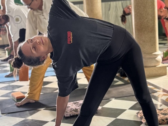 翻译:在美丽的普什卡(Pushkar)的萨纳坦瑜伽中心(Sanatan Yog)体验了几次精彩的晨间瑜伽课程后,我决定预订一个为期三天的静修营,深入探索瑜伽的传统。静修中心为我安排了一间非常舒适的房间,课程安排也十分丰富,包括体式练习、哲学课程、声音疗愈课程、唱诵课程、火祭仪式、城市观光和阿育吠陀疗法。短短的时间里,我从两位可爱的老师萨纳坦(Sanatan)和高朗(Gaurang)那里学到了很多关于瑜伽的历史、原则和实践——瑜伽是一种远超体式练习的生活方式。我不仅仅是一位客人,更成为了这个美好家庭的一份子。他们世世代代传承着这些传统,守护着他们美丽的寺庙。这个家庭分享这些传统时所倾注的爱与热情,给我留下了永生难忘的深刻印象。妈妈吉(Mamiji),您的饭菜太美味了!谢谢您借给我纱丽,还帮我穿上!