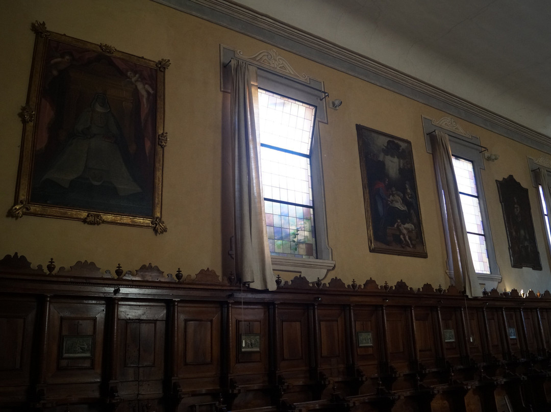 点评:Quello del Corpus Domini è un complesso monastico piuttosto grande che sorge nel centro storico medievale della città. Il sito, edificato nel corso del Quattrocento, è costituito dalla chiesa, che presenta esternamente una semplice facciata in mattoni nella quale spicca il portale gotico, e dal monastero ad oggi ancora utilizzato nella sua funzione originaria. La chiesa, presenta un ricco impianto decorativo tardobarocco e un bel soffitto interamente affrescato, da vedere poi anche la parte del coro con le tombe di alcuni membri della casata degli Este. Visitare questo monastero non è comunque semplice, gli orari possibili di fruizione sono molto ridotti, le indicazioni su come accedervi poco chiare, noi siamo riusciti ad entrare dopo aver suonato alcuni campanelli e trovato un signore che ci ha aperto la porta della chiesa. Altro aspetto importante è che non credo siano previste visite con spiegazione, semplicemente si viene fatti entrare e poi si visita in autonomia, perlomeno questa è stata la nostra esperienza. Se si riesce, vale comunque la pena visitarlo.