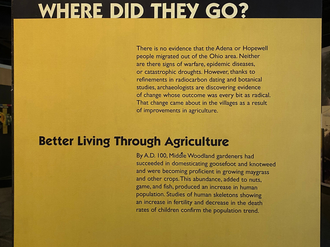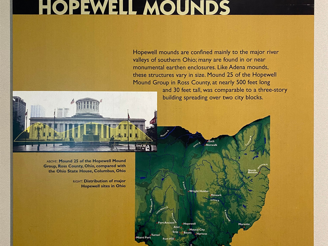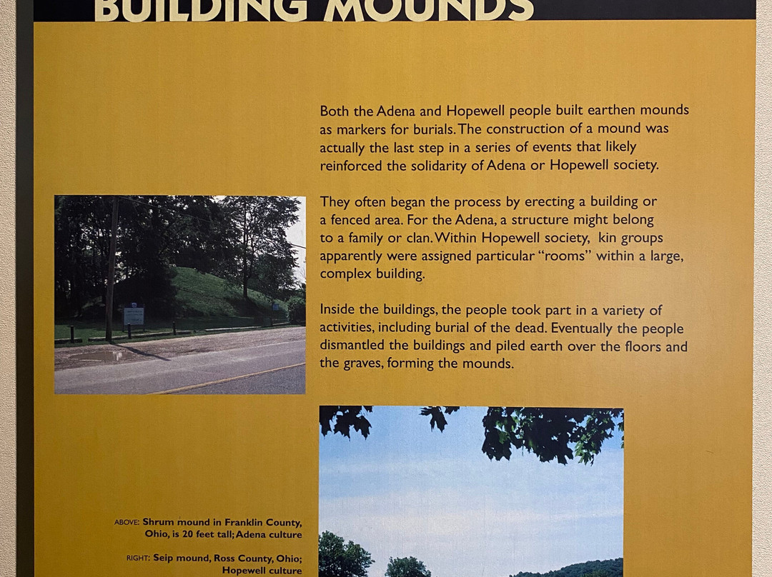 点评:Average trip. We arrived at approximately 12:30 pm and made our way towards the entrance of the museum. After paying the admission fee we began to explore the site. The museum contained multiple informational plaques that provided some background information on Native Americans and the significance of burial mounds to their culture. There were also several artifacts out for display, along with several short video clips that detailed the discovery process of the mounds. After viewing the indoor exhibits, we made our way outside to the walking trail where we were able to view the mounds. The walking trail was relatively easy and consisted of walking on a dirt/boardwalk type surface for a majority of the walk. The mounds were a little tricky to see at times as many of them were covered with trees and shrubs. Several portions of the trail were also not properly marked and we had to turn around at one point in order to prevent us from getting lost in the woods.