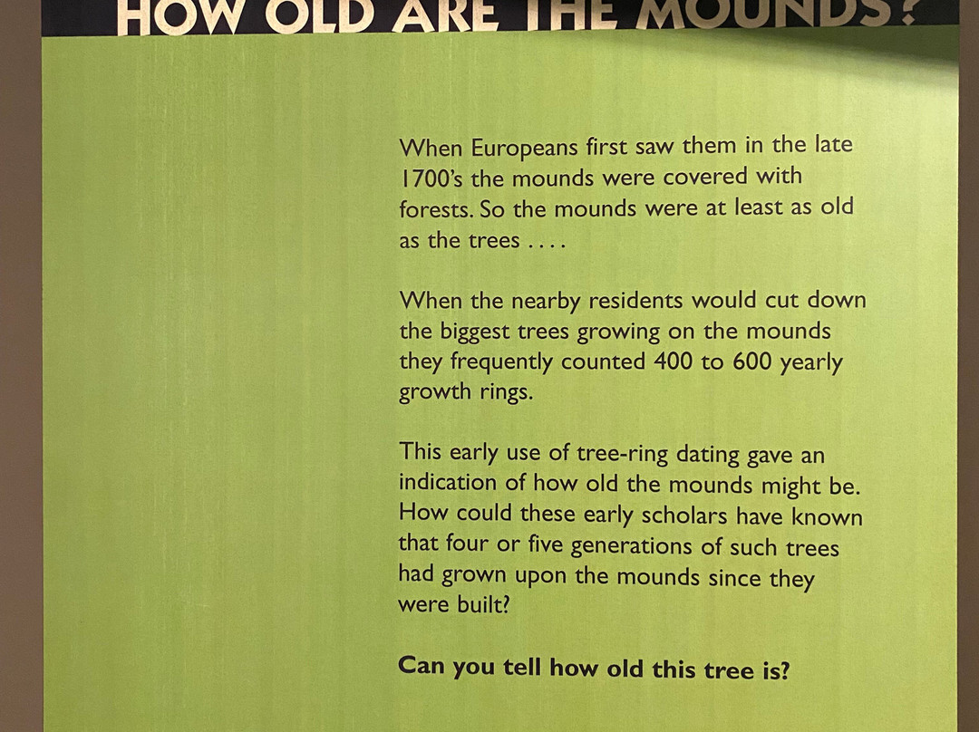 翻译:平淡无奇的旅程。我们大约中午 12:30 到达,然后朝博物馆入口走去。付完门票后,我们开始探索。博物馆里有多块信息牌,介绍了一些美洲原住民的背景信息以及墓葬对其文化的重要性。此外,博物馆还展出了一些文物,以及几段简短的视频片段,详细介绍了这些墓葬的发现过程。参观完室内展品后,我们走到室外的步道上,在那里可以欣赏到这些墓葬。步道相对容易,大部分路段都是在泥土/木板路之类的路面上行走。由于许多墓葬被树木和灌木覆盖,有时很难看到。步道的几段路段也没有清晰的标记,我们不得不在某个地方掉头,以免在树林里迷路。