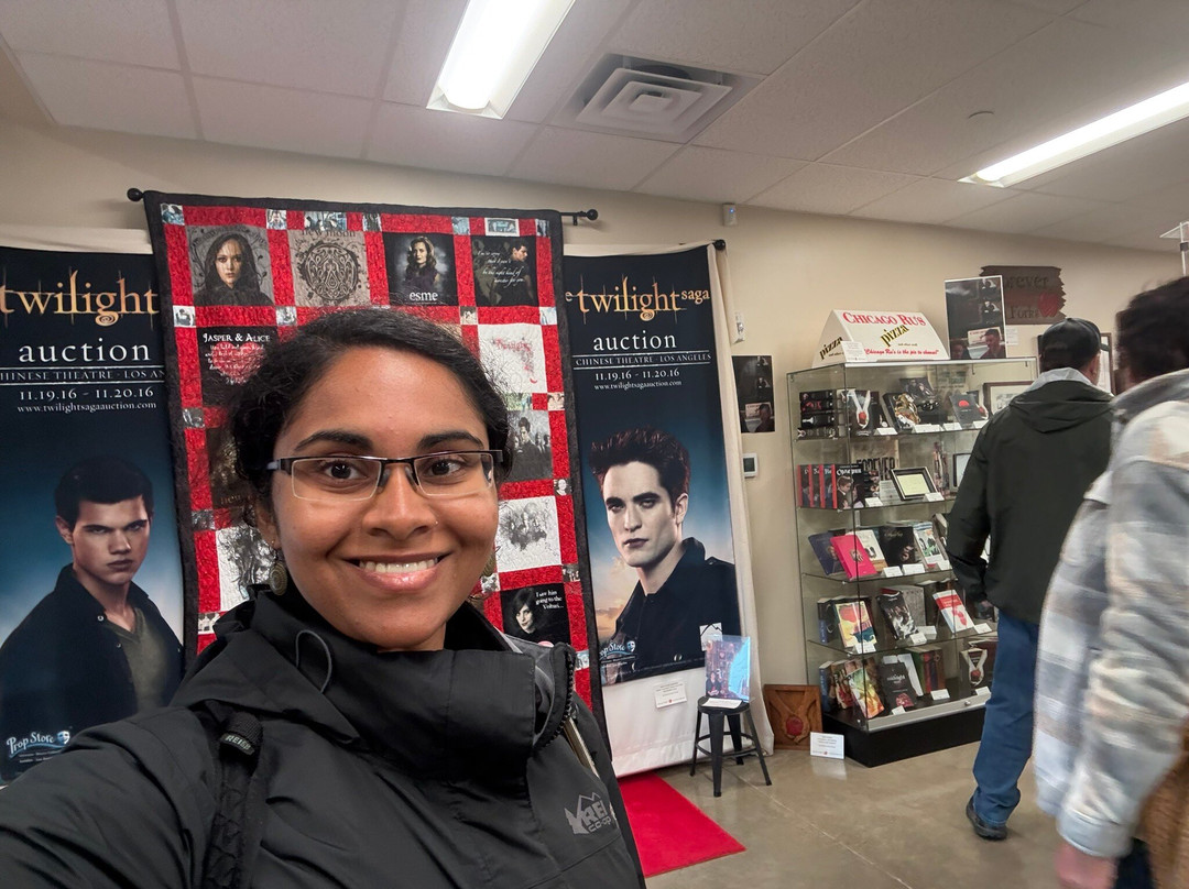 翻译:我参观了Forever Twilight,它位于Forks Collection,就在Native to Twilight的街对面!免费入场,还可以欣赏暮光电影里的道具。不过,你需要在登记簿上登记你的名字。你会被分配一个时间段,然后排队等候进入。通常允许一组人进入固定的时间段,你可以在房间里四处走走,看看道具。工作人员会进行简短的介绍,讲解参观内容,并讲解与暮光电影相关的趣闻轶事。这类参观大约每20分钟一次。我去了那里,拿到了下午的参观名额。他们没有洗手间,工作人员建议我去附近的公共图书馆上厕所或喝点水。我去了图书馆,在图书馆里待了一会儿,然后及时回来参加我的参观。进去之后,你大约有15分钟的时间可以欣赏电影里的道具,还可以拍很多照片!我太喜欢这次体验了——太好玩了!我一定会再来的❤️