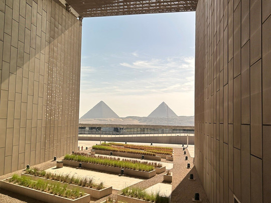 翻译:如果您来埃及,这里绝对是必游之地。它是世界上最大的单一文明博物馆。这座博物馆耗时20多年建成,耗资12亿美元。博物馆于去年11月开幕,首次展出了图坦卡蒙的5000多件藏品,其中包括著名的黄金面具。如果您是历史爱好者,我建议您在这里待上一整天。博物馆规模庞大,一天的时间远远不够。博物馆早上8:30开放,展厅9:00开放。人们从8:00就开始排队了。我建议您先参观图坦卡蒙藏品,因为那是其中最令人印象深刻的部分,然后再参观其他展厅。外国游客的门票是1450埃及镑,建议提前在网上预订,因为每天的座位有限。此外,博物馆还提供免费行李寄存服务,我们当时就使用了这项服务,非常方便。