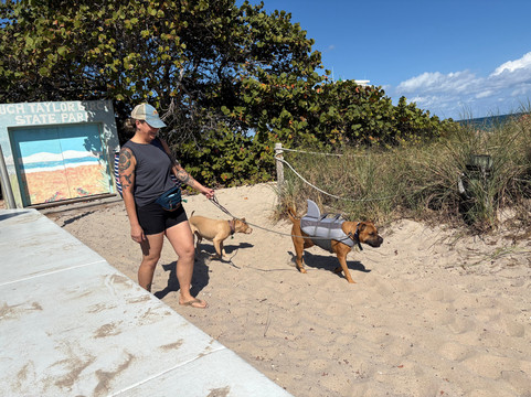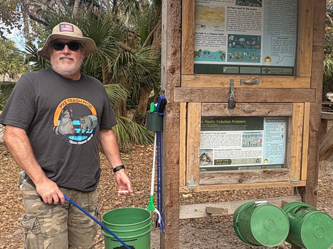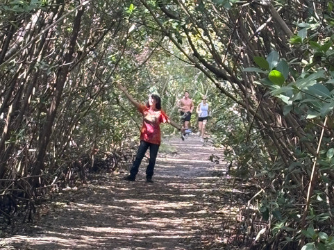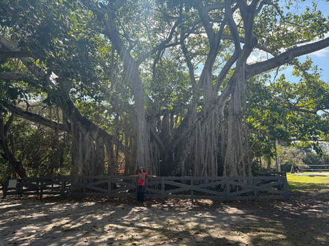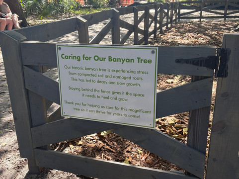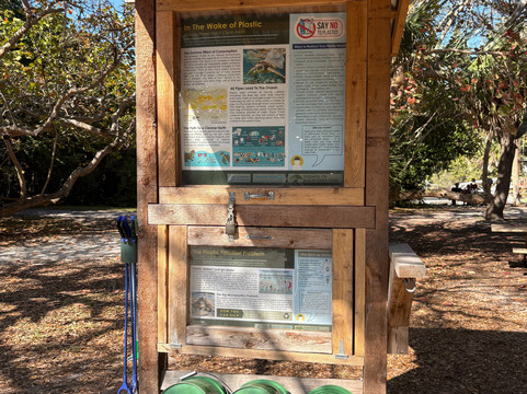 点评:Nice park. Best thing about it, and the first time I've ever seen this, were the stations allowing visitors to grab a green bucket and a picker and go trash mobbing! See the photos. I wish all parks had these stations. There are pretty trails and paths to walk, beautiful old banyan trees, live animal education shows (we saw Cinnamon the gopher turtle, the most frustrated turtle in the world. They bring Cinnamon outside to the same place to dig, and she digs and digs and digs and gets kind of far, and then they take her back inside and fill in her hole, only to bring her back out the next day and start all over again. She's been doing that for about 3 years so far.) There's a meditation garden, and nice benches along the canal where you can sit and look at multi-million dollar homes. The beach was really nice and we got to see a woman walking her dog who was wearing a shark fin life vest. We thought it was just a costume, but she told us her dog loves to swim -- but he sinks like a stone, so he has to wear a life vest! If you go into the restaurant at this park, called The Grove, be aware of the automatic 20% service charge they tack onto your bill.