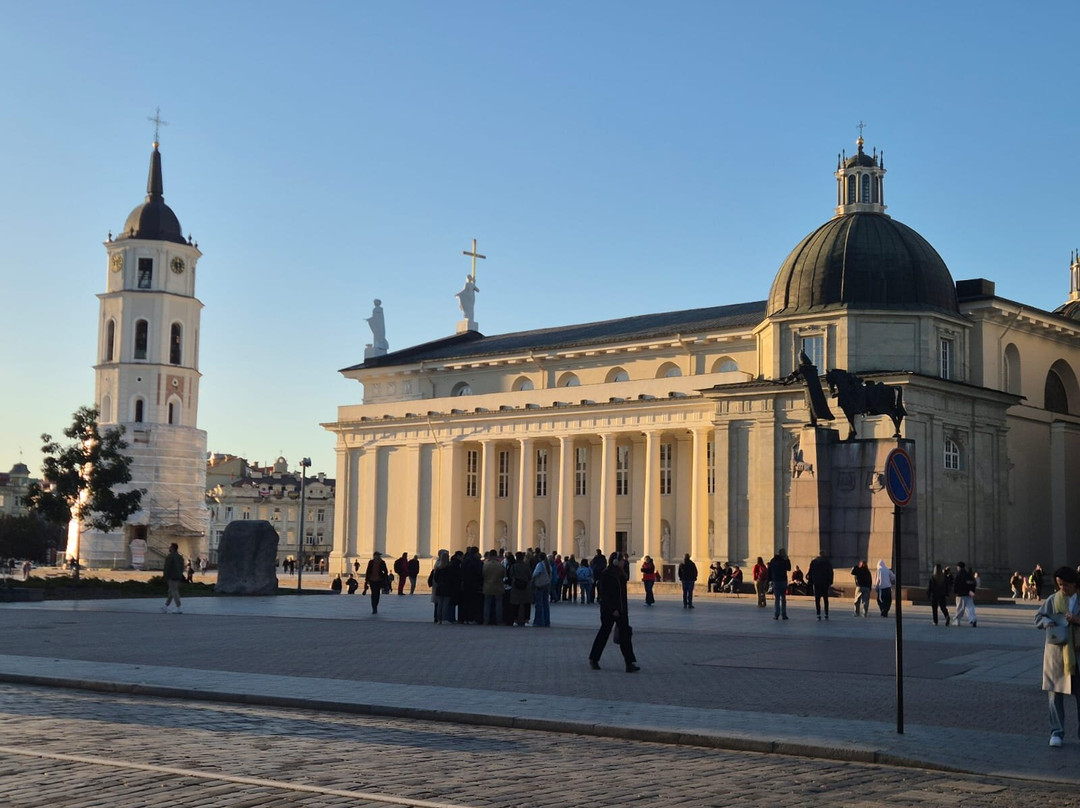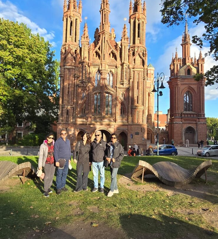 她在行程开始前就到达了酒店。我们从著名的“黎明之门”出发,那里有一幅圣母玛利亚的神奇圣像。沿着老城区的鹅卵石街道,我们经过了许多教堂和城堡遗址,然后穿过维尔尼亚河,到达充满艺术气息的“乌祖皮斯区”或“乌祖皮斯共和国”。从那里,我们沿着风景如画的文学街——一个充满艺术气息的露天画廊——漫步到维尔尼亚河畔的圣安妮教堂。我们的旅程在大教堂广场结束,广场正对着标志性的格迪米纳斯纪念碑。立陶宛大公宫就在附近,格迪米纳斯塔也在步行距离之内。