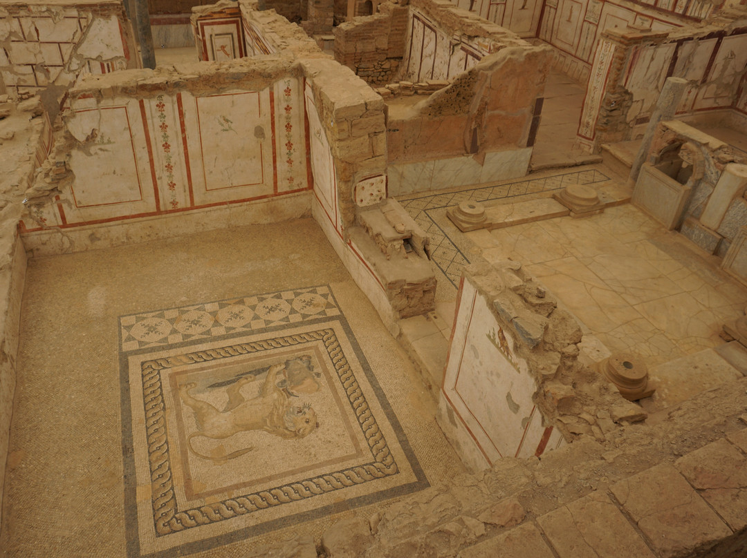 翻译:以弗所联排别墅建于公元1世纪至3世纪之间,是以弗所考古遗址最引人注目的特色之一。这片奢华的住宅别墅群居住着当时城中上流社会的居民。房屋内绘有角斗士、动物和其他主题的涂鸦,以及一些精美的马赛克镶嵌画。