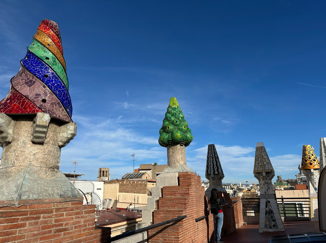 点评:Probably not as popular as Gaudi's other buildings, the Palau Guell nonetheless still deserves a worthy mention as it's probably Gaudi's first major work in Barcelona, having been completed in 1888, long before the completion of his other more ostentatious works such as Casa Battlo and Casa Mila. Furthermore, it's also the best preserved as it never underwent any significant renovations. The mansion still has large oval gates at the front for horse carriages to go directly into the horse stables, with direct access to the upper floors via a ramp. Located in the Raval district, just off the popular Las Ramblas pedestrianized street, Palau Guell with its Venetian-style facade is easily located and is a convenient stop-over whilst walking the Las Ramblas area. At an entrance fee of €12, it's value for money for those wanting to get a taste of Gaudi without paying a hefty price and without the crowds. One of the unique features that is present in Gaudi-designed houses is the flamboyant roof terrace, which is also clearly evident in Palau Guell, with its 14 chimneys dressed in mosaics and sculptured into eye-catching shapes. Unsurprisingly, the building was designated as UNESCO World Heritage Sites collectively with 6 other Gaudi properties under the "Works of Antoni Gaudi" grouping, so you’re assured of visiting a valuable globally-recognised heritage building.
