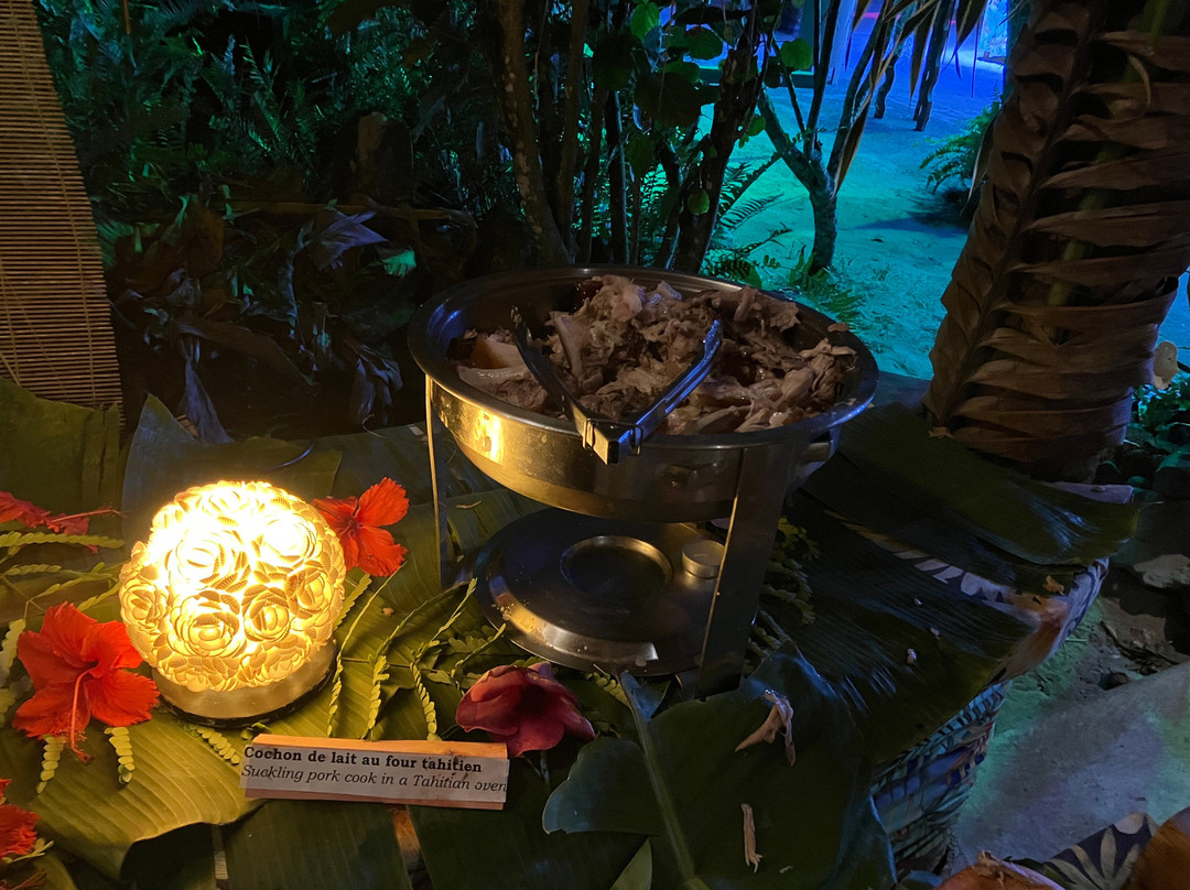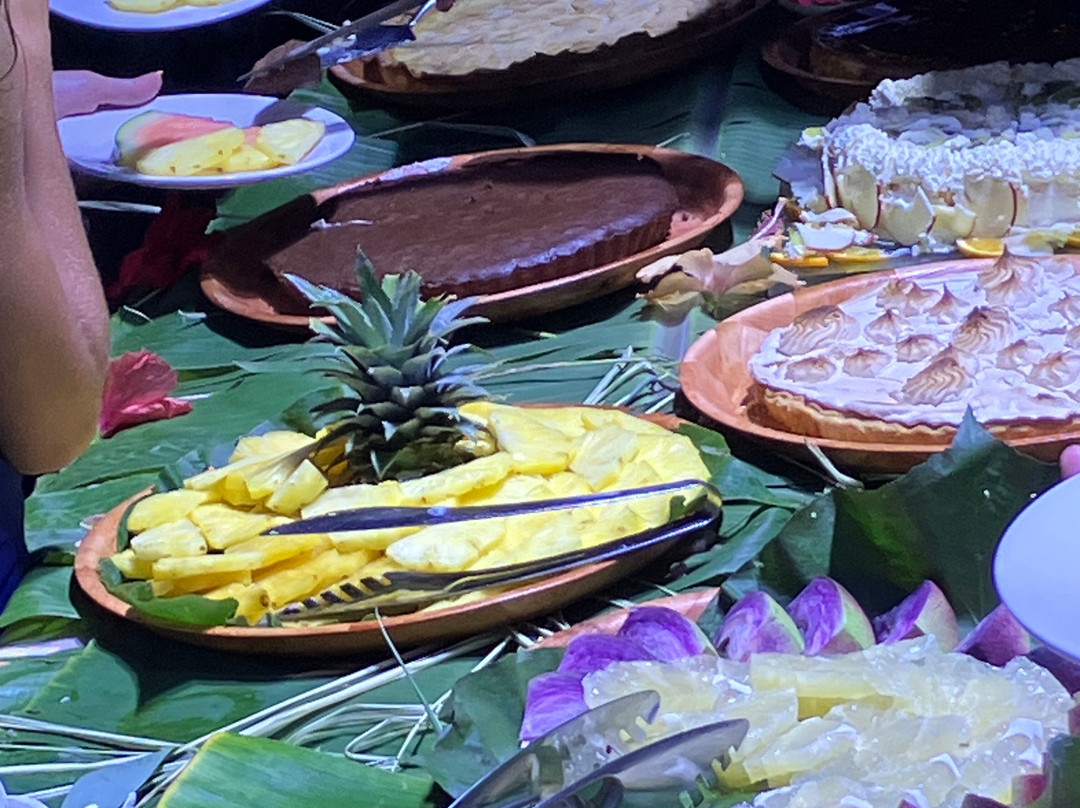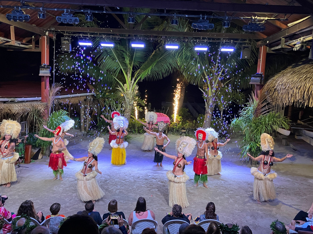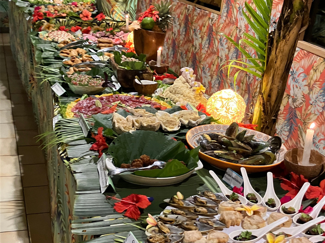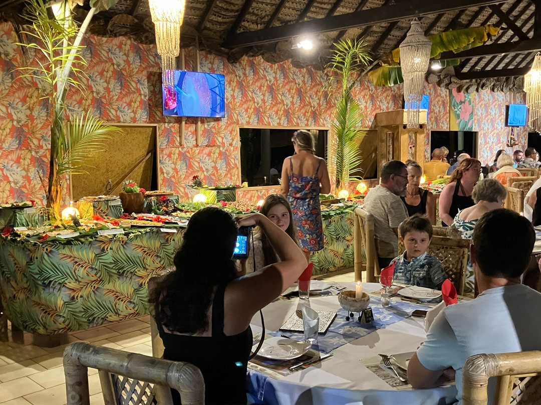 点评:We were so lucky to get a place for the buffet and dinner show. We only found out about it when we'd arrived in Moorea and our hotel (Cook's Bay) helped me by phoning and finding there had been two cancellations for that evening so booked for us. I thought we were going to have to drive in our rental car there so was already anticipating the 'who was going to be the designated driver' conversation. I was delighted to then hear that there was a coach which picked up up from the hotel and dropped us back. The ride itself was a treat in being able to see more of the island while someone else did the driving.