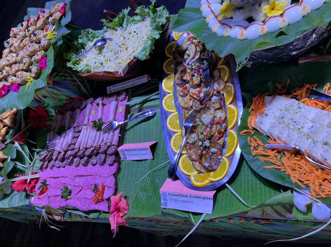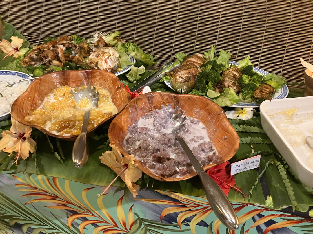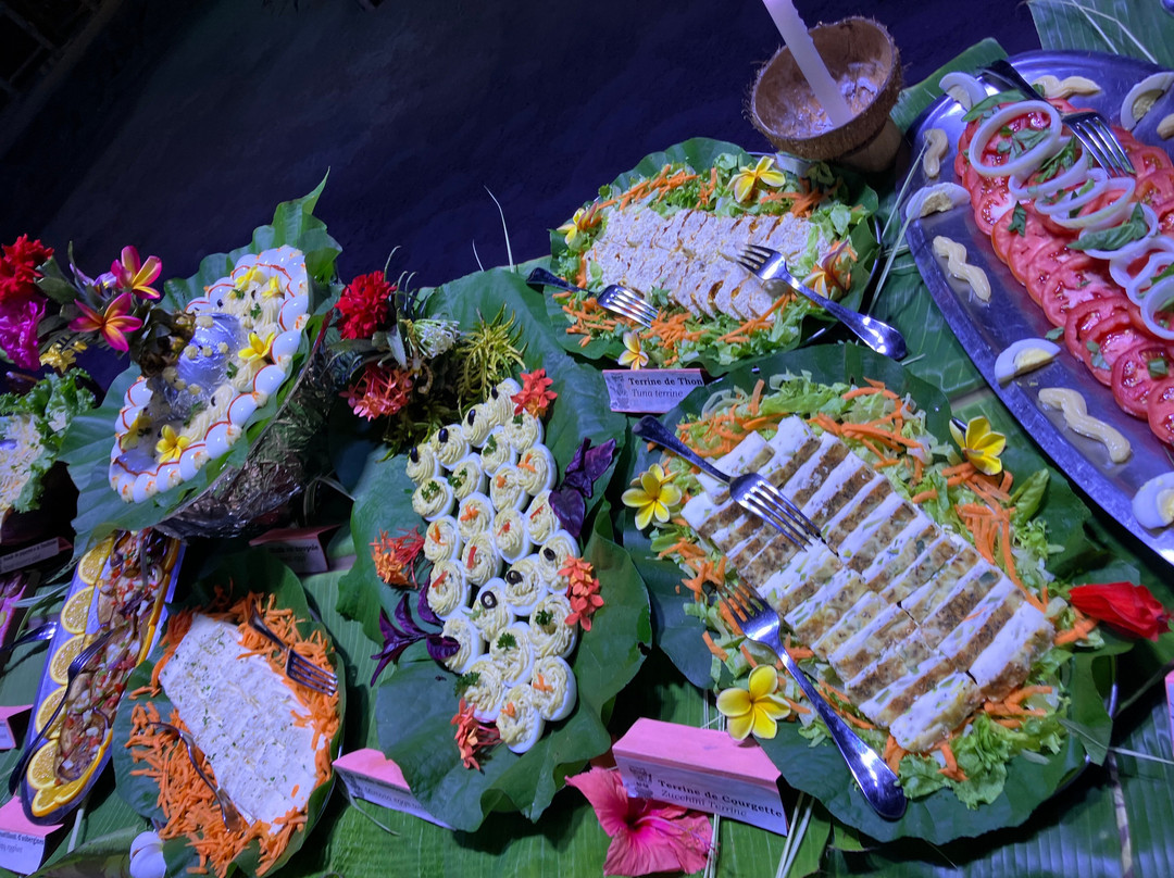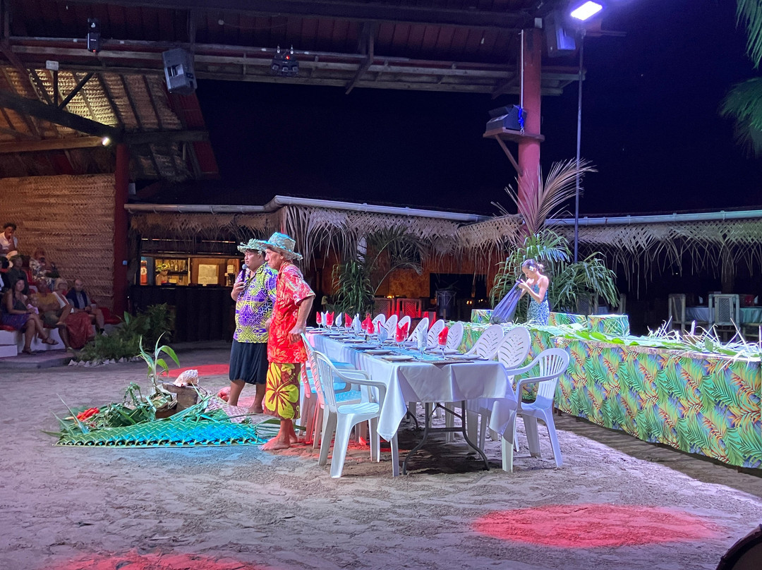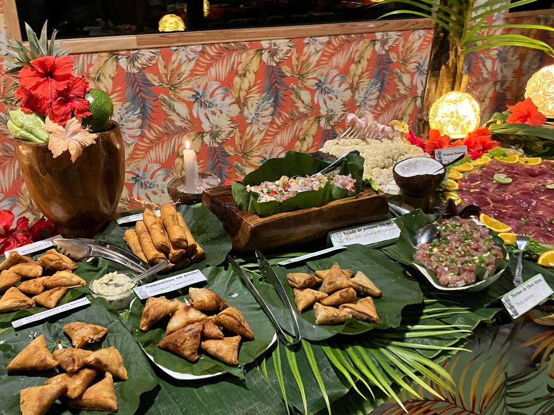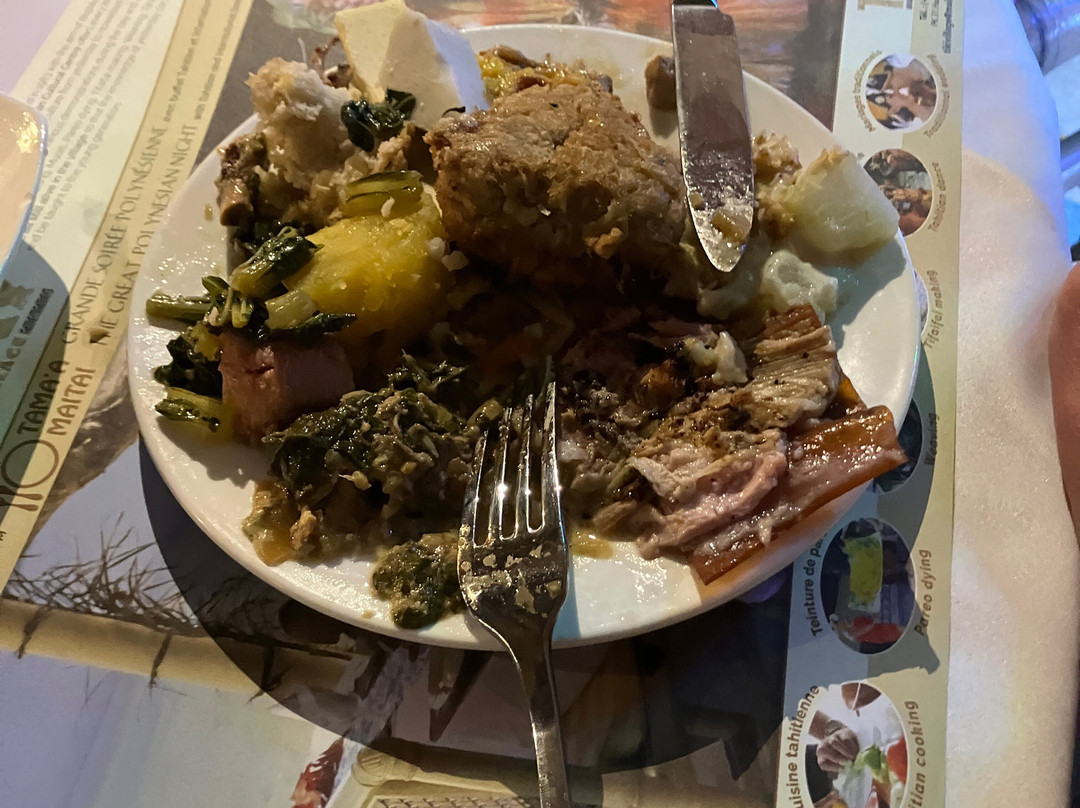 点评:We were so lucky to get a place for the buffet and dinner show. We only found out about it when we'd arrived in Moorea and our hotel (Cook's Bay) helped me by phoning and finding there had been two cancellations for that evening so booked for us. I thought we were going to have to drive in our rental car there so was already anticipating the 'who was going to be the designated driver' conversation. I was delighted to then hear that there was a coach which picked up up from the hotel and dropped us back. The ride itself was a treat in being able to see more of the island while someone else did the driving.