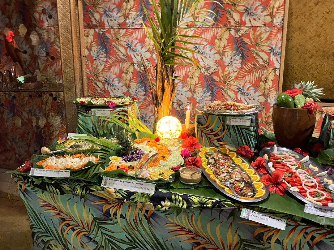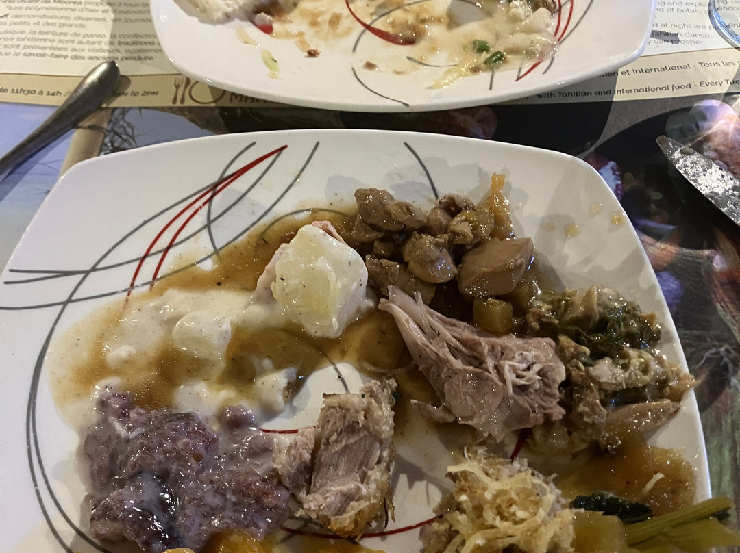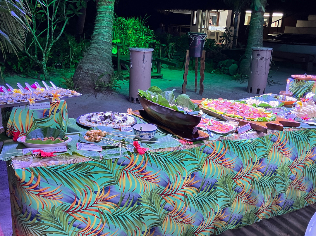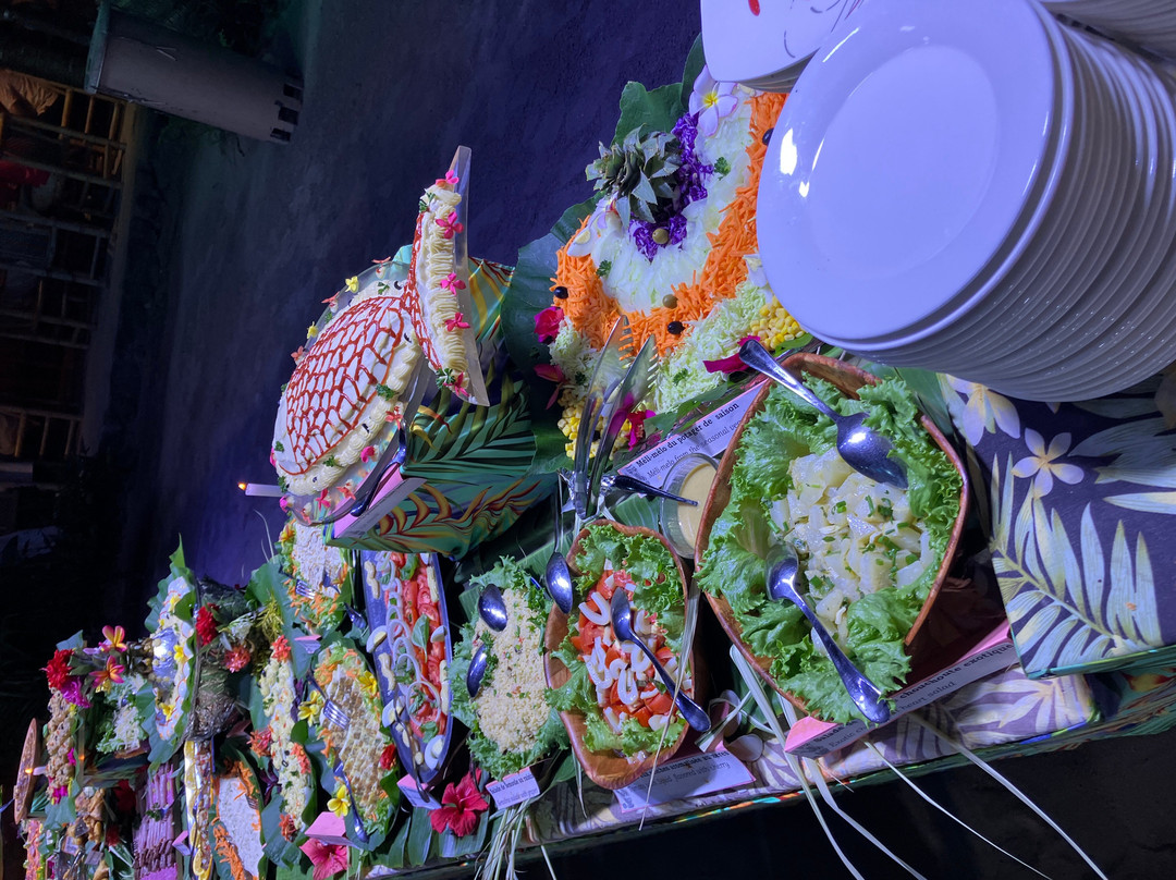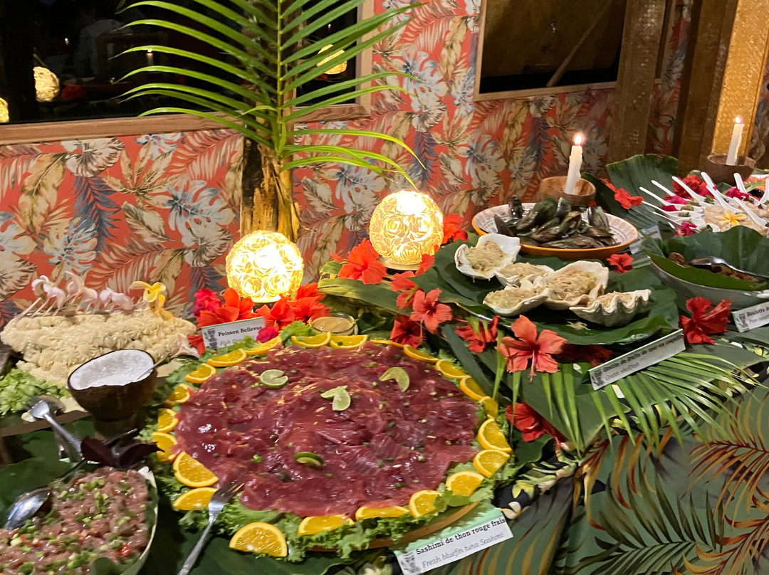 点评:We were so lucky to get a place for the buffet and dinner show. We only found out about it when we'd arrived in Moorea and our hotel (Cook's Bay) helped me by phoning and finding there had been two cancellations for that evening so booked for us. I thought we were going to have to drive in our rental car there so was already anticipating the 'who was going to be the designated driver' conversation. I was delighted to then hear that there was a coach which picked up up from the hotel and dropped us back. The ride itself was a treat in being able to see more of the island while someone else did the driving.