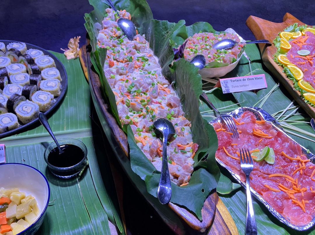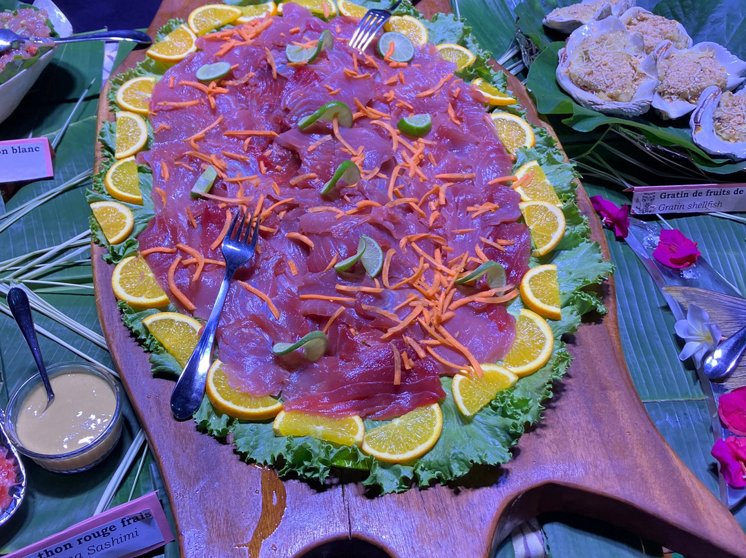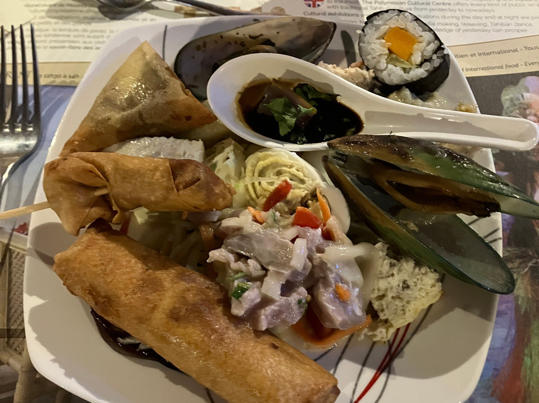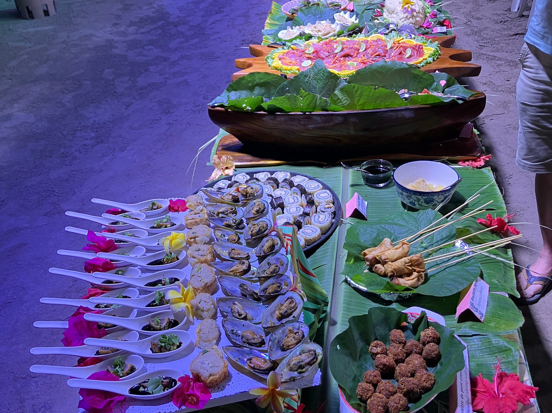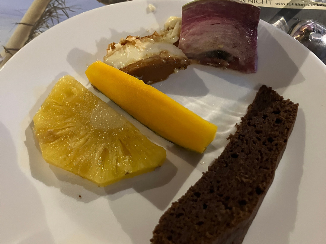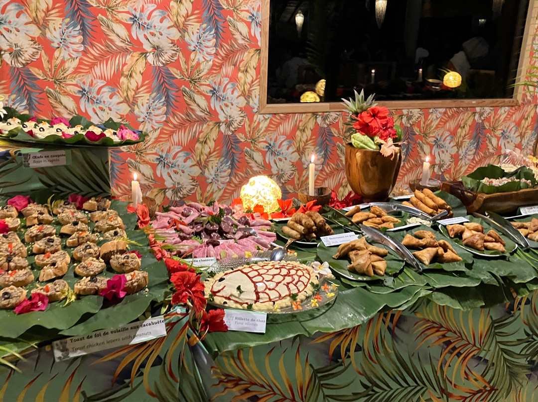 点评:We were so lucky to get a place for the buffet and dinner show. We only found out about it when we'd arrived in Moorea and our hotel (Cook's Bay) helped me by phoning and finding there had been two cancellations for that evening so booked for us. I thought we were going to have to drive in our rental car there so was already anticipating the 'who was going to be the designated driver' conversation. I was delighted to then hear that there was a coach which picked up up from the hotel and dropped us back. The ride itself was a treat in being able to see more of the island while someone else did the driving.