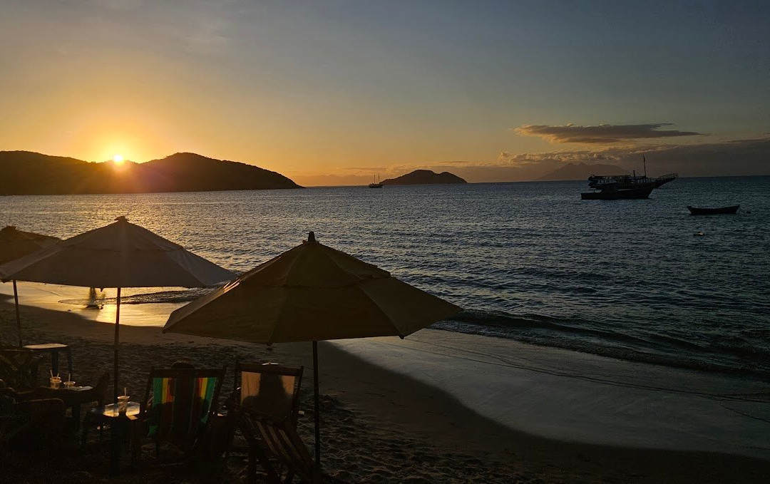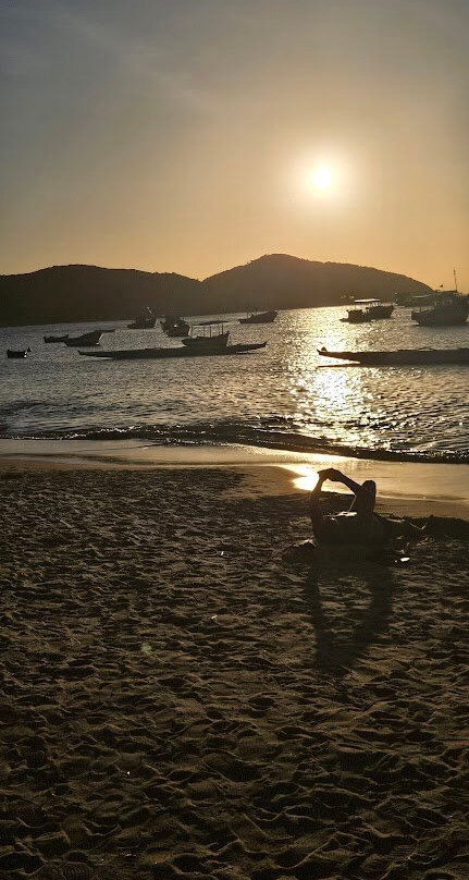 渔船的存在为钓鱼海滩带来了美丽的景色,非常适合拍照,并且海浪较小、海水较温暖,较为平静。它的日落与群山、岛屿和船只形成鲜明对比,十分美丽。我拍了漂亮的照片。