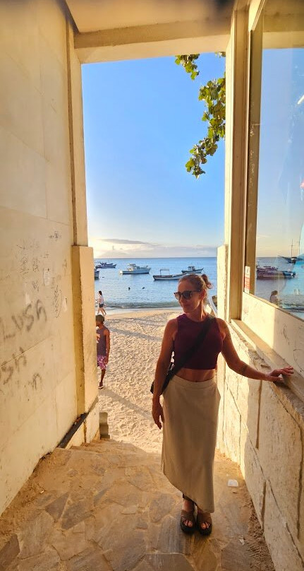 A presença de barcos de pesca oferece um lindo visual de praia de pescadores, excelente para fotografias e mais tranquila com ondas pequenas e mar mais quente. Também é lindo seu por do sol em contraste com as montanhas, ilhas e barcos. Tirei lindas fotos.