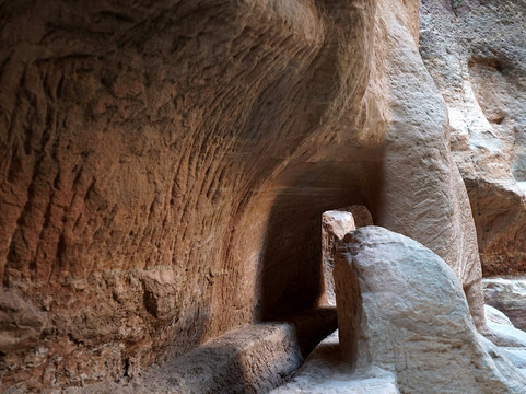 进入峡谷前,不妨在桥上稍作停留,向右望去,您会看到一条隧道的入口。这条隧道是古代为了避免溪流涌入锡克峡谷而开凿的,目的是让溪流能够流经佩特拉。