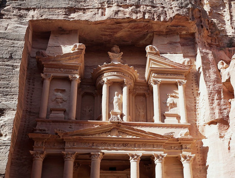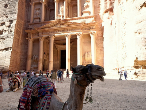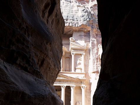 翻译:或许是因为它坐落在狭窄的峡谷中,或许是因为它嵌入山体,又或许是因为它得到了精心的修复,总之,这座古迹保存得极其完好,几乎看不到佩特拉大部分地区常见的风化痕迹。沿着锡克峡谷走到尽头,它突然出现在眼前,无论你之前看过多少张以同样视角拍摄的照片,眼前的景象都一定会让你震撼。