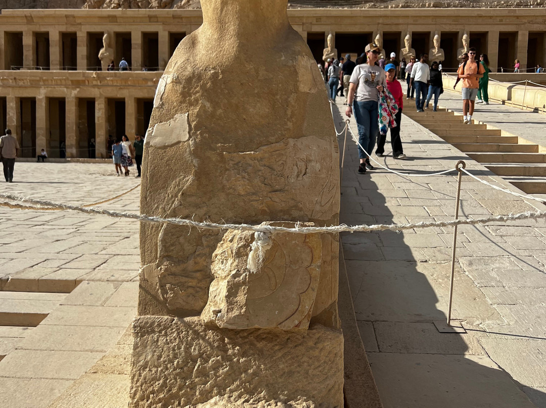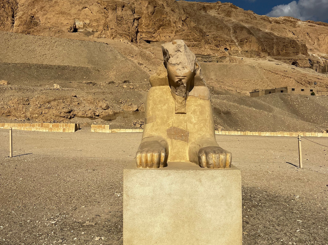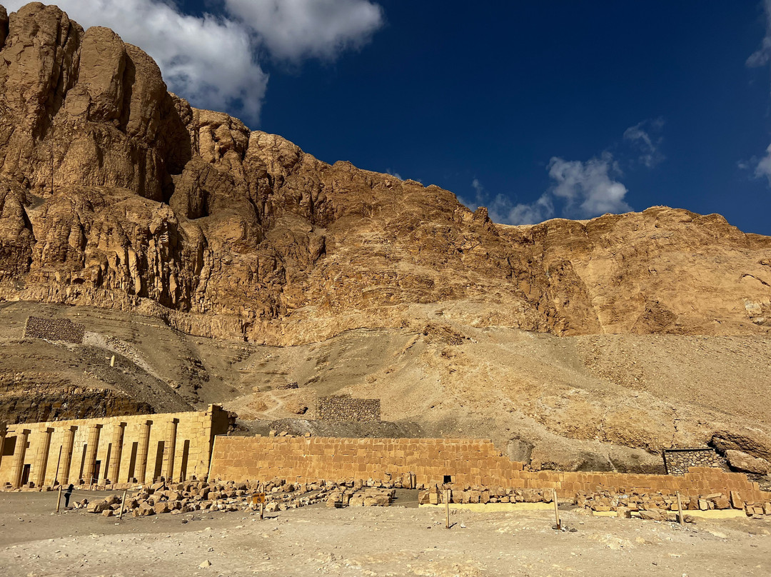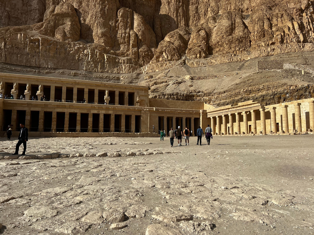 翻译:这座宏伟的神庙坐落在令人叹为观止的环境中!俯瞰着代尔巴哈里雄伟的悬崖,这座神庙堪称建筑界的杰作。这座神庙建于公元前15世纪,不幸被图特摩斯三世摧毁,他试图抹去所有关于哈特谢普苏特女王的记载和记忆。神庙的墙壁上布满了精美的彩绘雕刻,描绘了神庙仪式、宗教节日以及方尖碑从采石场运到卡纳克神庙的场景。此外,还描绘了哈特谢普苏特远征蓬特和她的诞生。这片土地上的居民、他们的住所和周围的环境,以及埃及人带回的财富和珍稀动物,都被生动地记录了下来。参观这座神庙将是一次令人着迷的难忘体验。其宏伟的建筑令人叹为观止,令人印象深刻。神庙位于卢克索城西侧,靠近帝王谷。