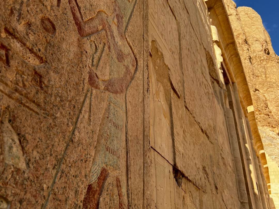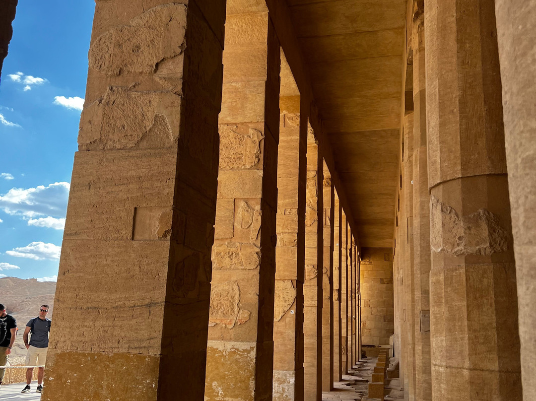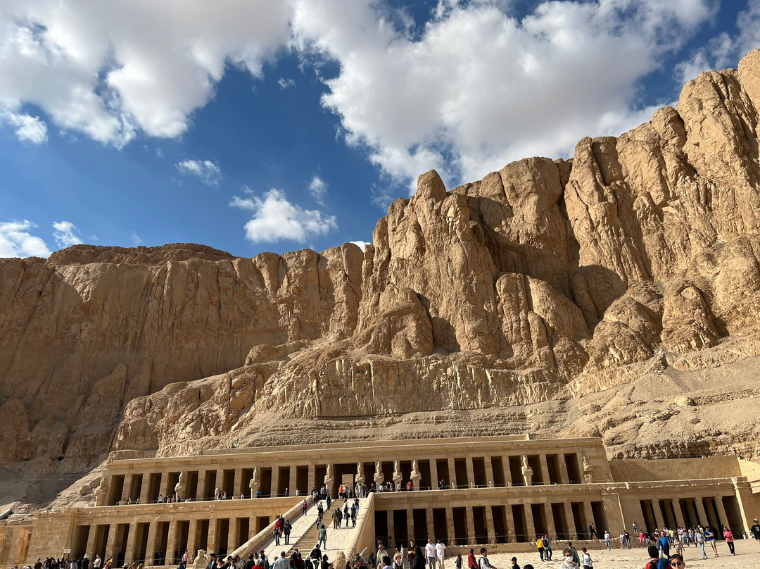 点评:A magnificent temple set in a breathtaking surrounding! Overlooking the majestic cliffs of the Deir-el-Bahari, the Temple is a masterpiece in architectural terms. Built in the 15th century BC, this Temple was unfortunately destroyed by Thutmose III who attempted to obliterate any references and memory of Queen Hatshepsut. The temple’s walls are covered with beautiful painted carvings depicting temple rituals, religious festivals, and the transportation of obelisks from the quarry to their destination in Karnak Temple. Hatshepsut’s expedition to Punt and her birth are also depicted. The inhabitants of this land, their dwellings, and surrounding environment are vividly recorded, as are the riches and exotic animals that the Egyptians brought back with them. A visit to this Temple is an enthralling unforgettable experience. The grandeur of the structure is very striking and impressive. The Temple is located on the west side across from the city of Luxor very close to the Valley of Kings