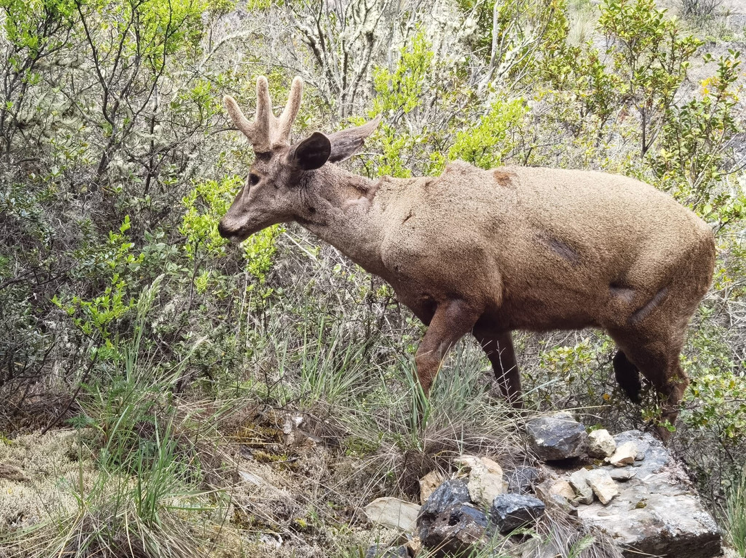 我去了湖边的观景点。她允许我徒步走了一小段路(到观景点大概20-30分钟),我很幸运地在路上看到了一只胡穆尔羚(你知道,它是智利和阿根廷的濒危动物)。