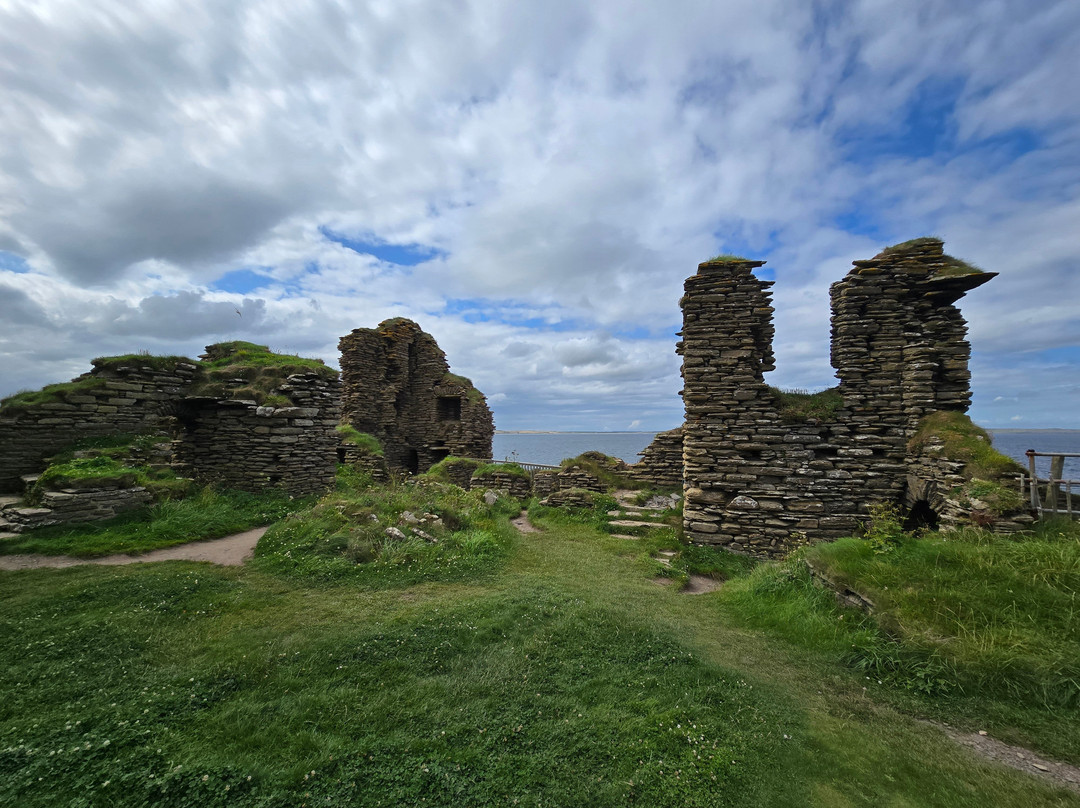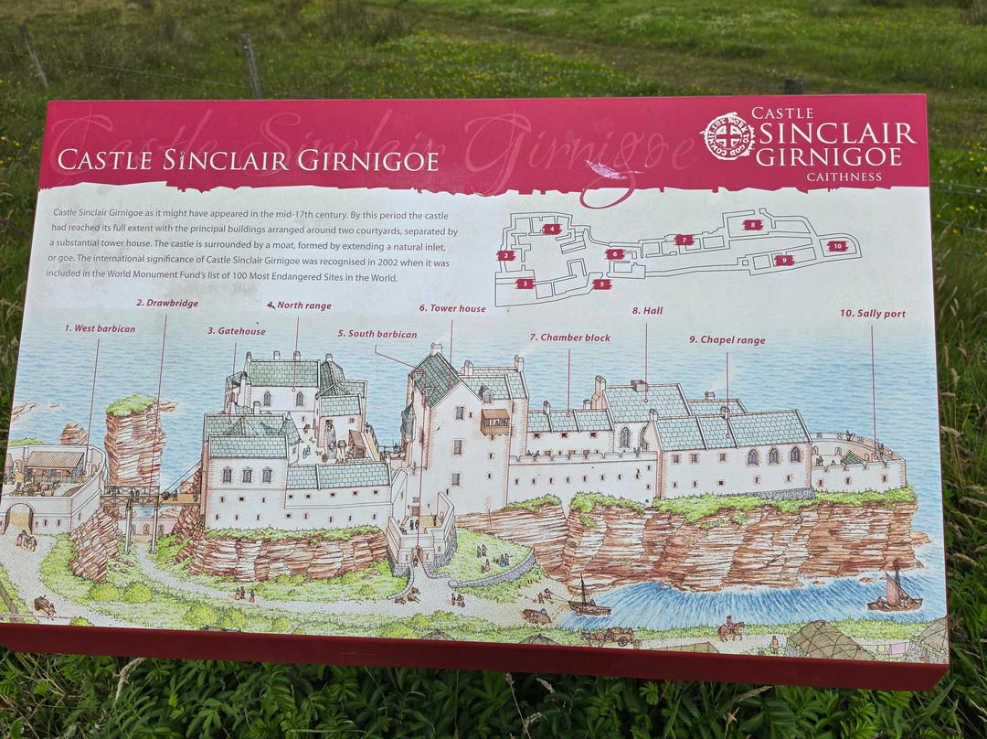 1379年,奥克尼伯爵领地通过婚姻传给了亨利·辛克莱。他很可能是这里最早建造城堡的人,并将其命名为吉尼戈城堡。15世纪,城堡进行了改建和重建,16世纪和17世纪又进行了更多的修缮。1680年,乔治·辛克莱率领的一行人拆除了城堡的屋顶、地板和家具。