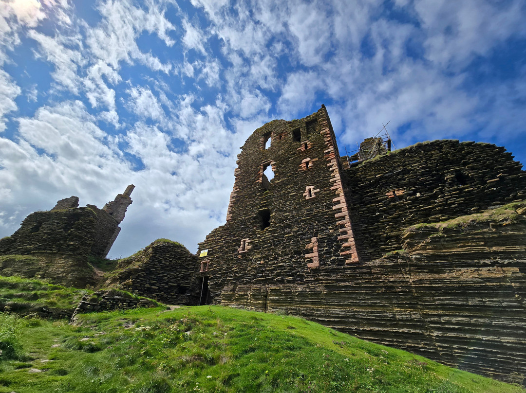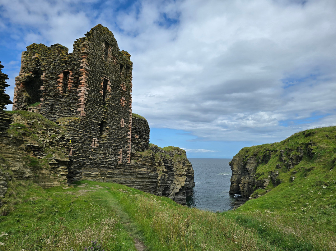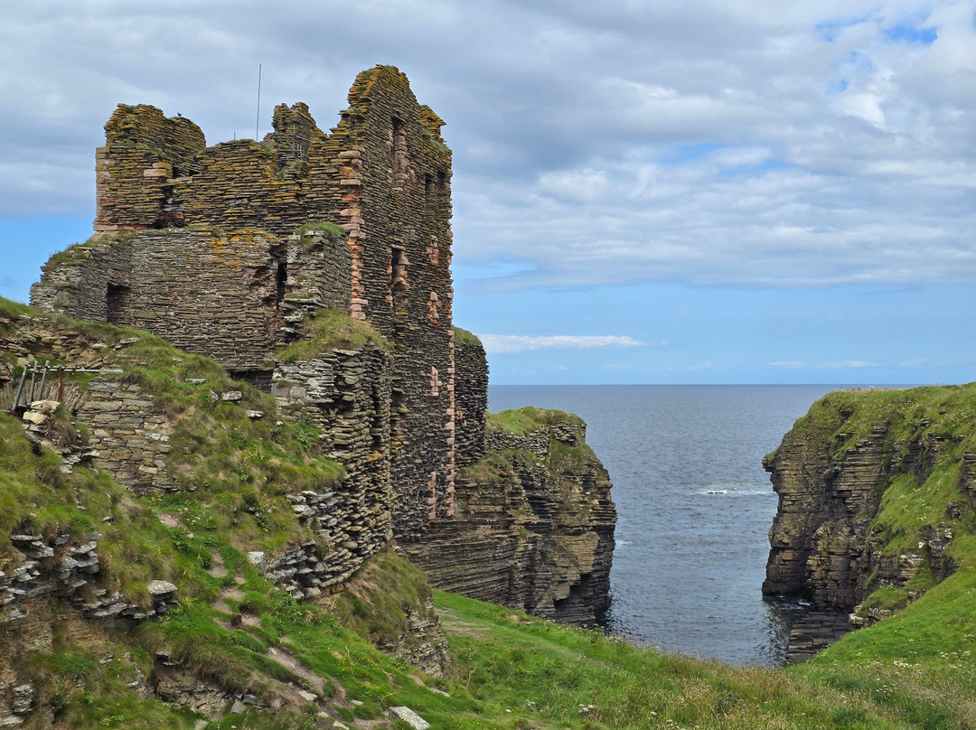 In 1379, the Earldom of Orkney passed by marriage to Henry Sinclair. It was possibly him who first built a castle here which he called Castle Girnigoe. Then it was remodelled and redeveloped in the 1400s with more work done in the 1500s and 1600s. In 1680 a party of men led by George Sinclair stripped it of roofs, floors and furniture.