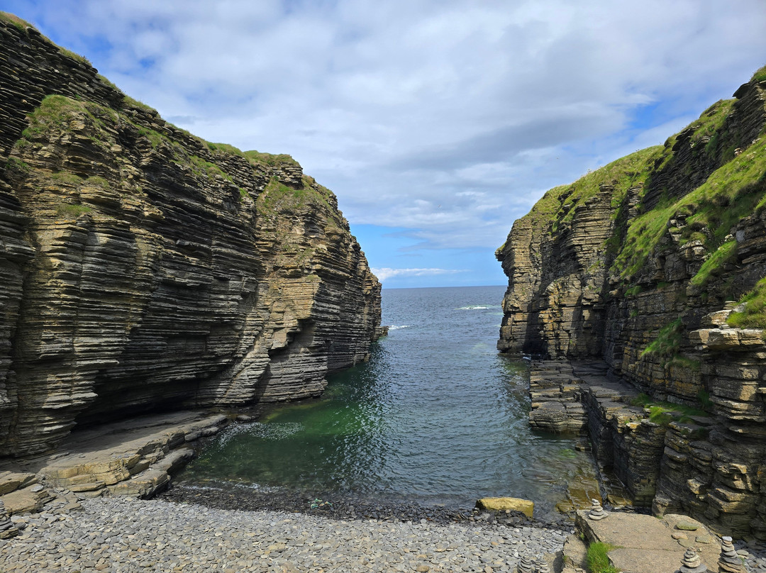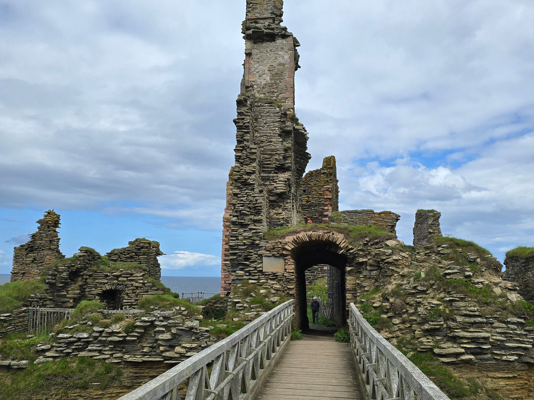 点评:Castle Sinclair up here in the very north is a smaller ruin, but one of the most impressive ones we've visited. And we've visited many. The location is really just breathtaking, sitting here by the sea on the cliffs. Dunnottar castle has a similar location and is bigger, but this one here is equally impressive I'd say.