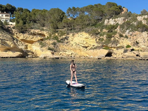 早上我们从波塔诺斯(Portals Nous)出发,船长推荐了一个水质清澈的静谧海湾,我们可以在那里停下来畅游一番。我们在那里待的时间比原计划长得多,因为大家都舍不得回到船上。之后,我们沿着海岸线缓缓航行,一边享受日光浴,一边聆听着悠扬的音乐。
