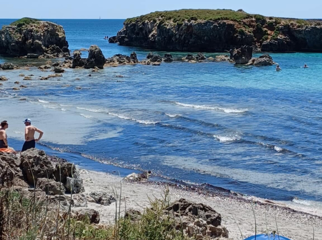 点评:…in occasione del mio trekking!!…sul Cami de Cavalls!!…all’isola di Minorca!!…partita da Cala Galdana!!…sono arrivata fino a Sant Tomas!!…per cui ho visto questa bella spiaggia!!…è la Platja de Binigaus!!…è facilmente raggiungibile a piedi o in bicicletta!!…qui si possono vedere delle bellissime scogliere!!…con delle altezze veramente spettacolari!!…il mare è fantastico!!…di un blu turchese!!…ma si sconsiglia di attraccare le imbarcazioni!!…perché la zona è senza protezioni e con una scarsa profondità!!…si può solamente navigare con delle piccole barchette!!…ho notato la presenza di nudisti!!…forse l’ambiente così naturale della spiaggia di Binigaus richiama un pochino la naturalezza anche della persona!!…che dire!!…bella!!…bella!!…è la Platja de Binigaus!!…scenario favoloso!!…Minorca da vivere!!…🌊⬆️🎉⛱️🌊☀️🎉‼️