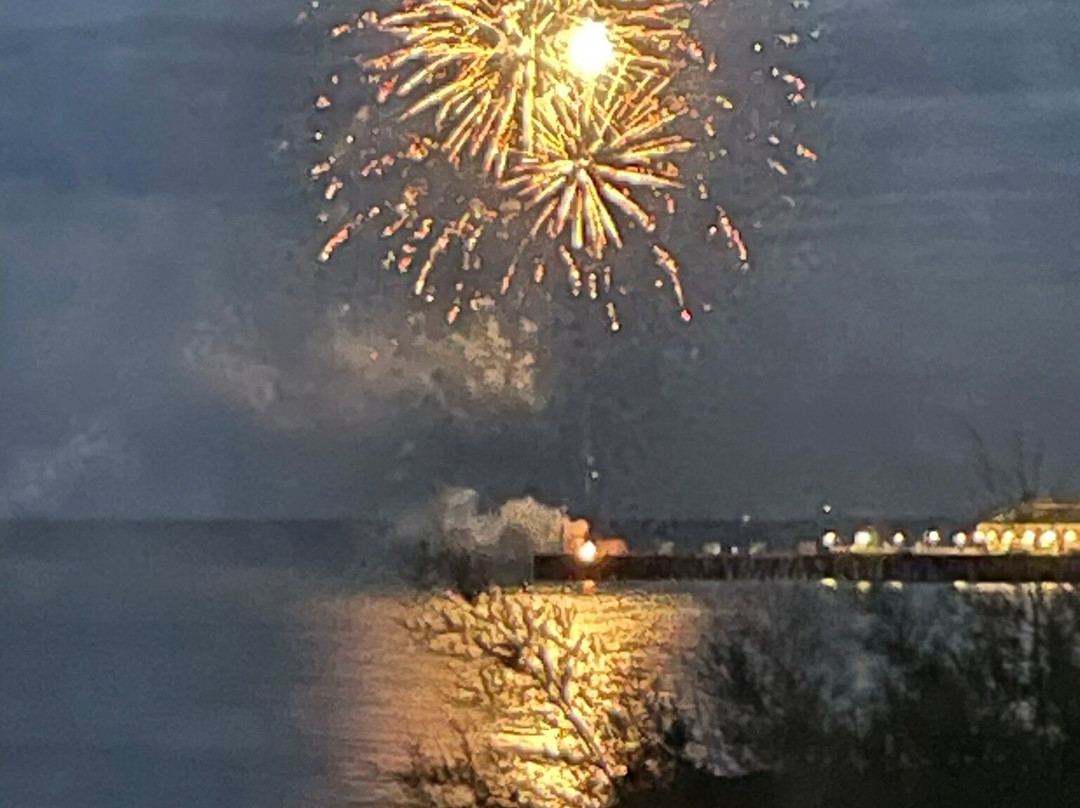点评:A large area of sandy beaches both sides of the pier. To the right is the busiest with more cafes, bars, toilets and beach huts