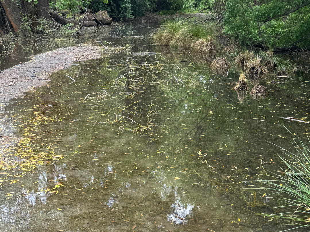 翻译:我们今天刚走过这条有路标的步道。我们从海耶斯湖凉亭出发,一路向北,原本以为会轻松走完,大约需要两个小时。沿途有很多路标,告诉我们返回起点的时间。然而,走了大约三分之二的路程,在湖的南岸,我们遇到了洪水。由于通往高地的路标上写着“私人领地,禁止通行”,我们别无选择。我们硬着头皮继续前行,心想洪水应该很快就会过去。结果并非如此。我们趟着齐踝深的水走了超过一英里。最后,我们终于找到了一条可以走到公路上的路。鞋子湿透了,我们只好在公路边结束了徒步。我不明白为什么沿途的路标和网上都没有提示洪水情况。这条步道宣传的是“轻松”难度。结果我们筋疲力尽,脚上起了水泡,鞋子也毁了。大家一定要小心!