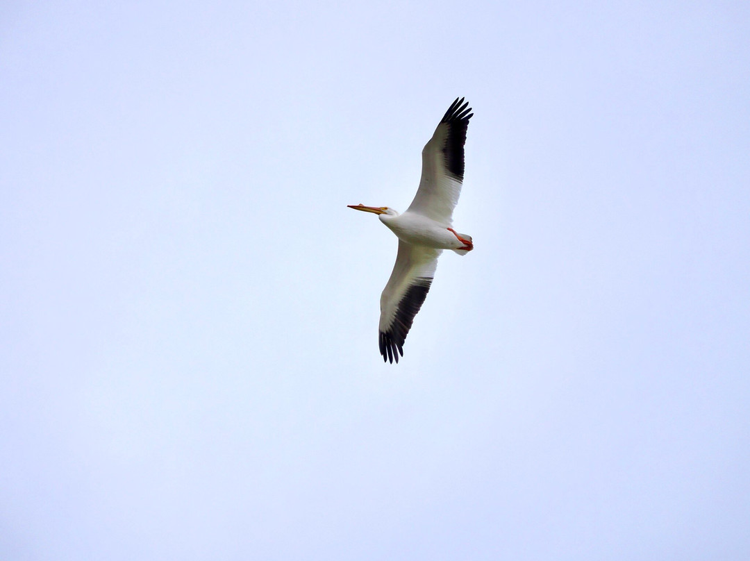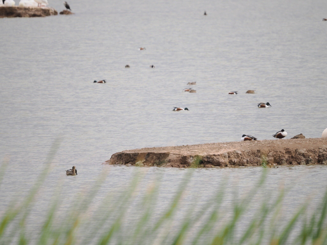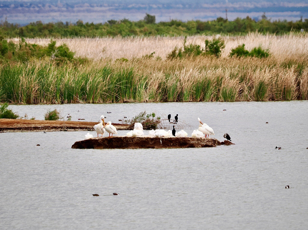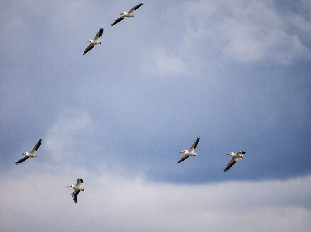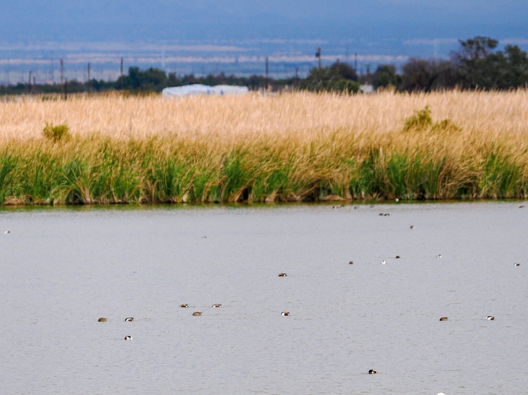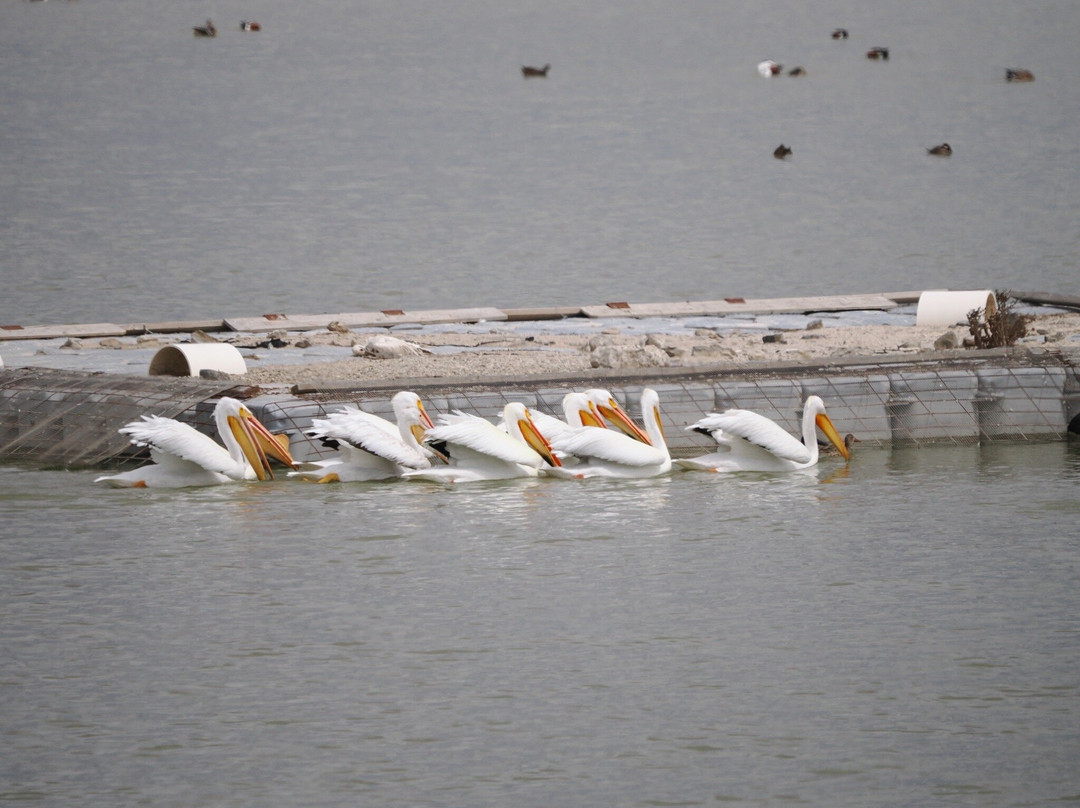 最容易识别的当然是最大的,包括大蓝鹭(其中一只飞得很近,很难看到)和许多美洲白鹈鹕,其中有几只在池塘里觅食。无数的北方琵嘴鸭散布在不同的池塘里。斑嘴鸊鷉、双冠鸬鹚、反嘴鹬和绿翅鸭也共享这片水域。我们发现的一些非水禽包括黑鹂、红翅黑鹂和北粗翅燕。