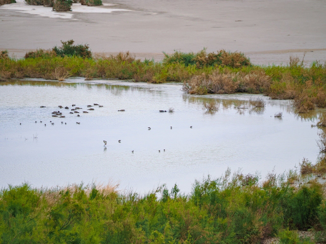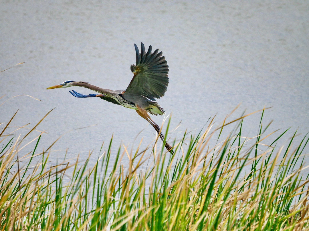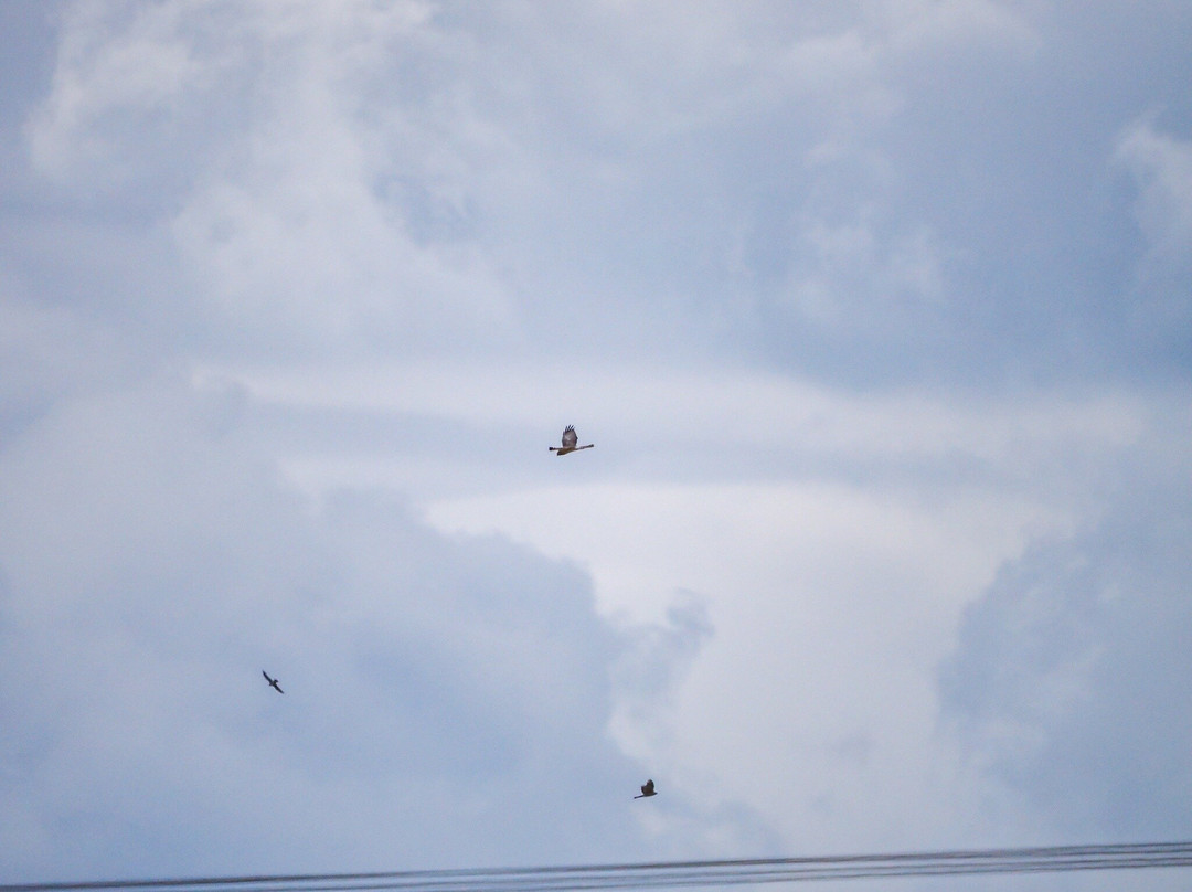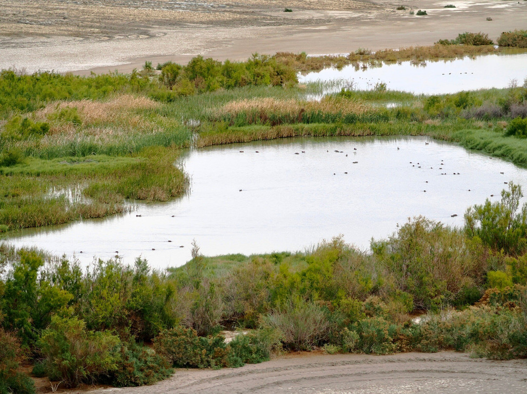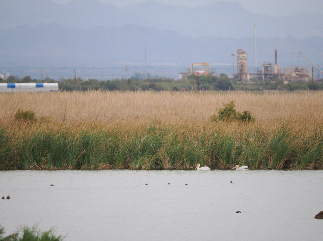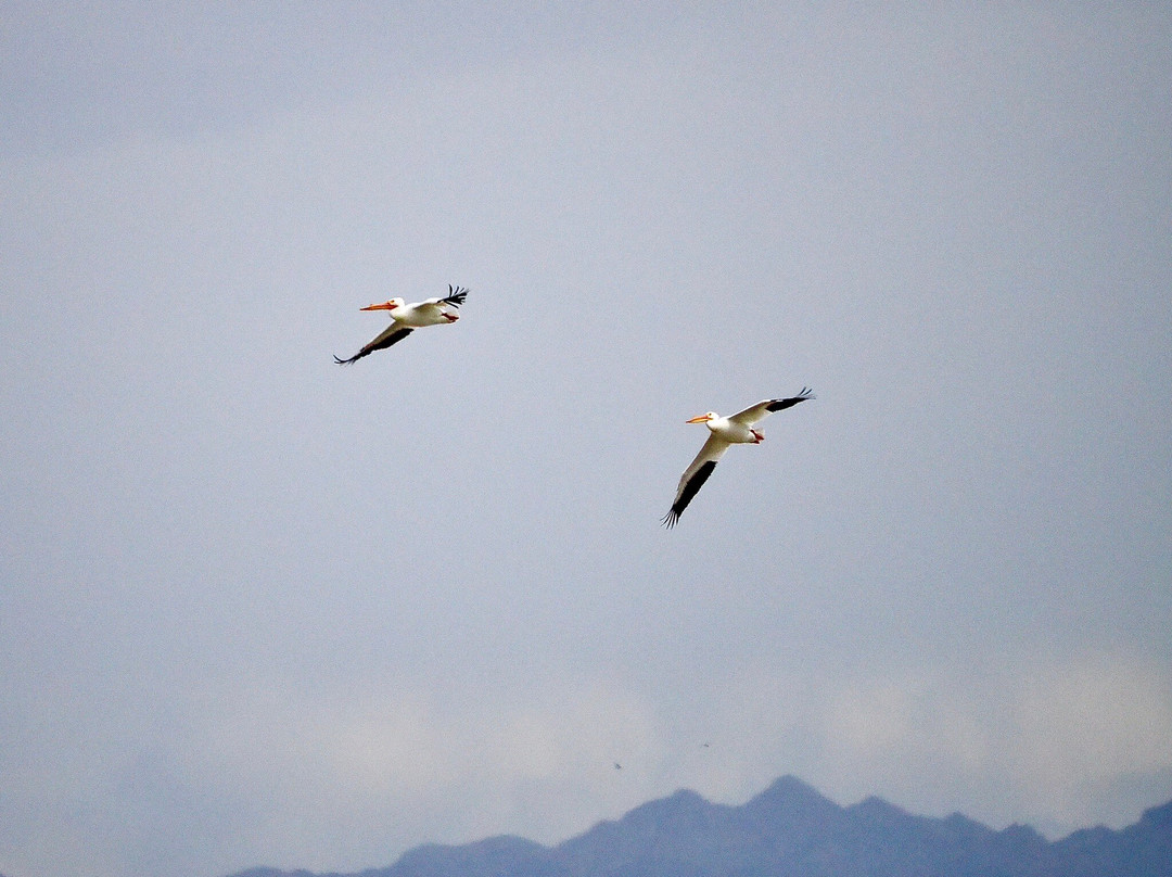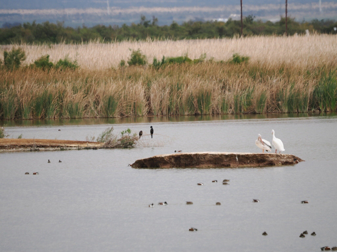 最容易识别的当然是最大的,包括大蓝鹭(其中一只飞得很近,很难看到)和许多美洲白鹈鹕,其中有几只在池塘里觅食。无数的北方琵嘴鸭散布在不同的池塘里。斑嘴鸊鷉、双冠鸬鹚、反嘴鹬和绿翅鸭也共享这片水域。我们发现的一些非水禽包括黑鹂、红翅黑鹂和北粗翅燕。