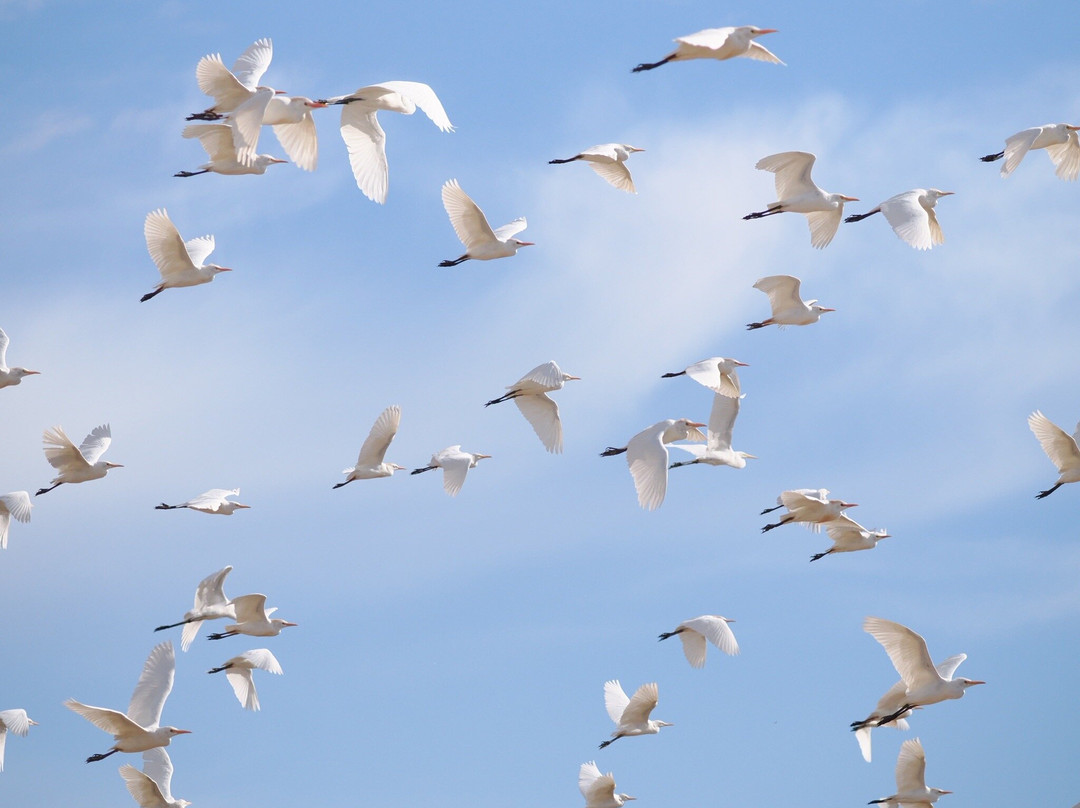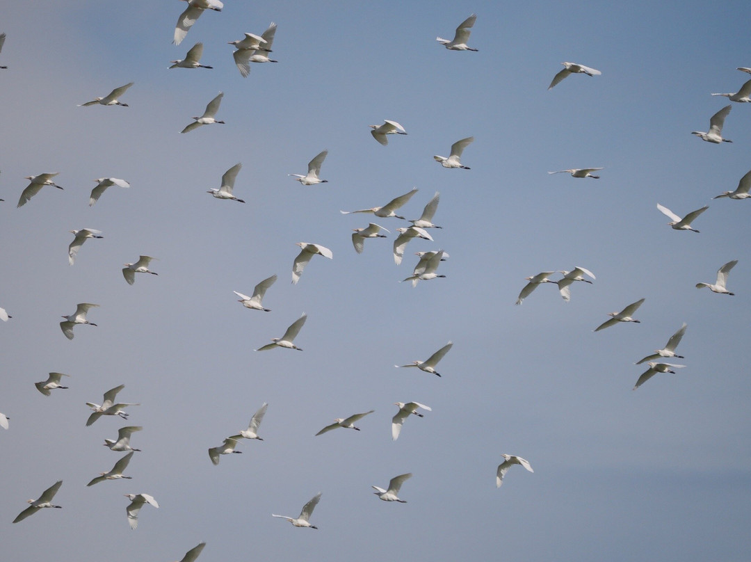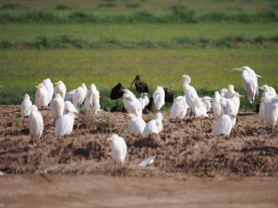 一定要去探索附近的田野。我们不会错过田野里一大群牛背鹭,但离公路很近。白脸鹮和它们混在一起。它们飞走时景象十分壮观。该地区的明星鸟是穴鸮。我们最初很难发现它们。一旦我们知道我们在寻找什么——沿着堤岸,那些比橙色泥土颜色更深的小而直立的斑点。它们个头很小,但目光凶猛。