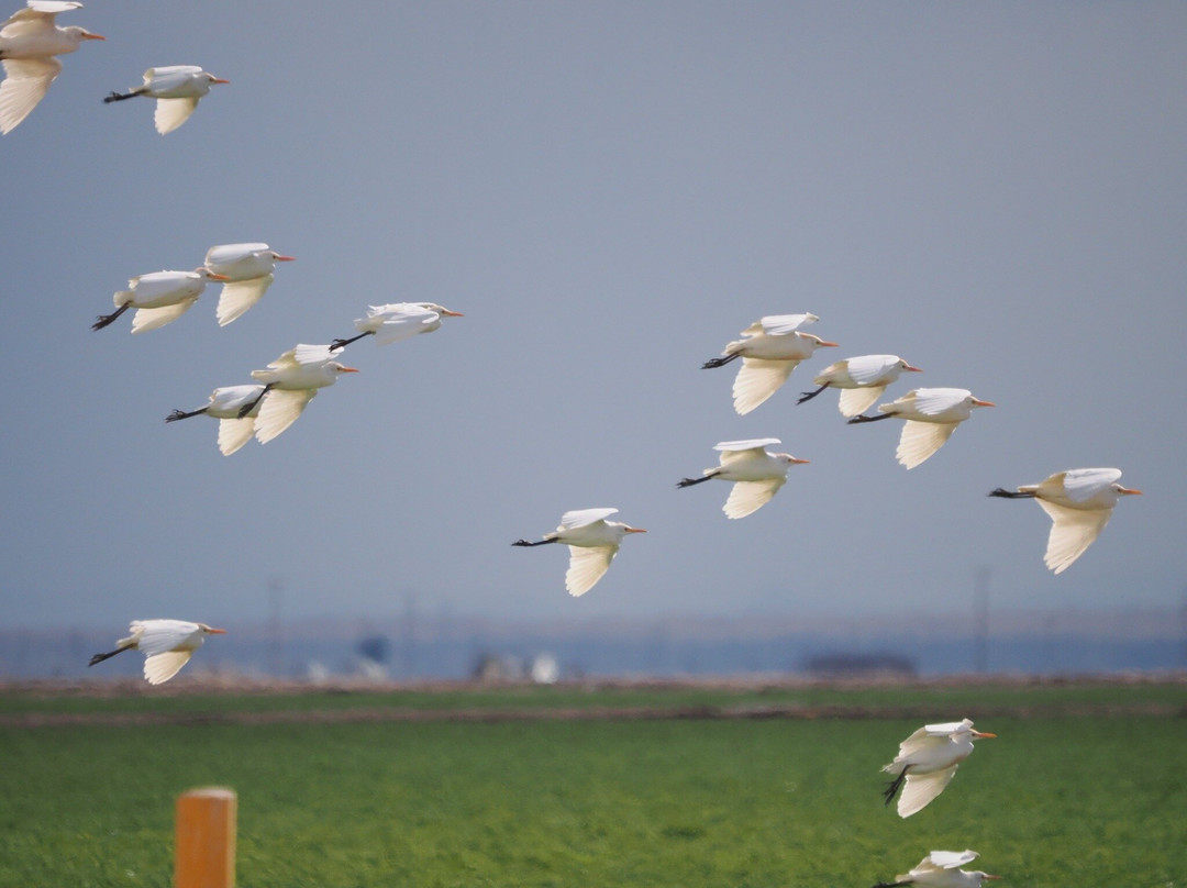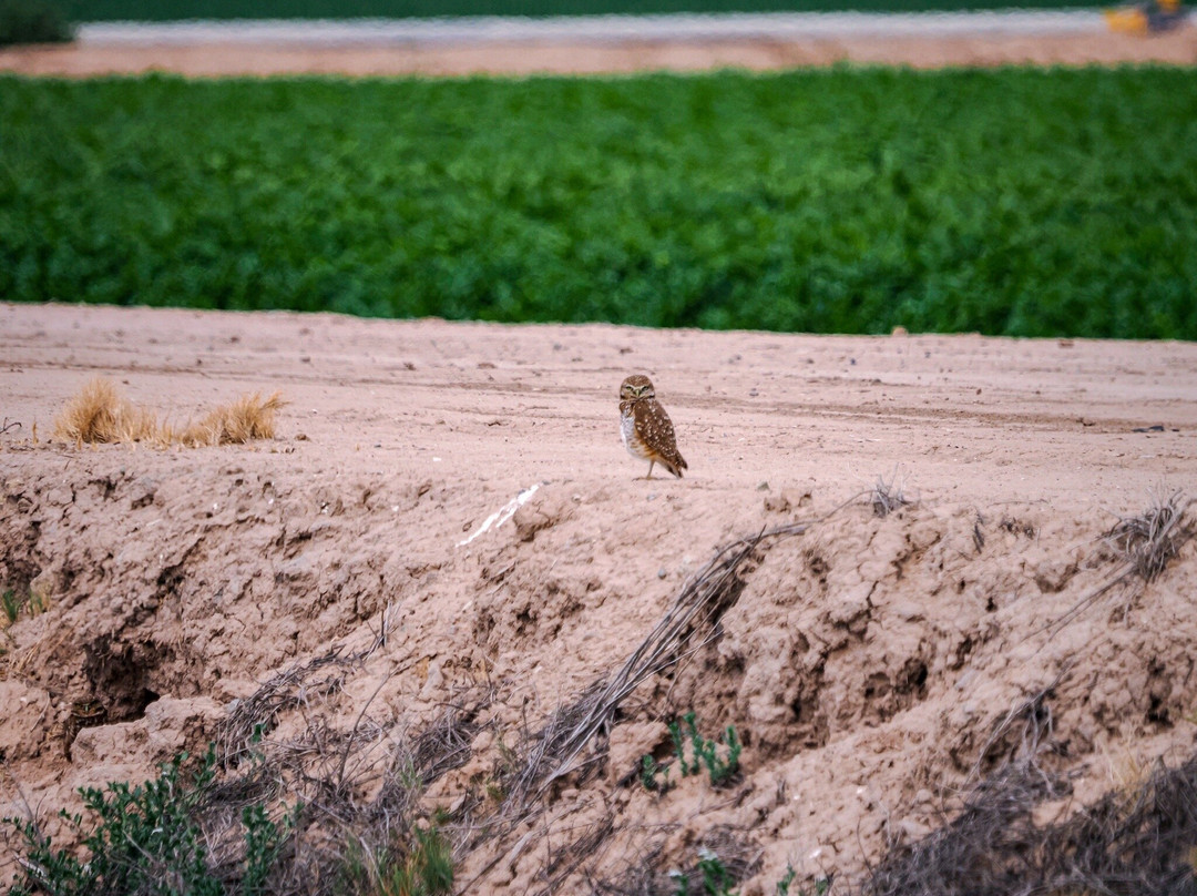 Be sure to explore some the nearby fields. We couldn’t miss a large flock of cattle egrets in a field but quite close to road. Mixed in with them were white-faced ibis. They were a spectacular sight when they flew off. The star bird of the area was the Burrowing owl. We initially had a hard time spotting them. Once we knew what we looking for - small, upright blobs darker than the orange earth - along the embankments. They were tiny but pack fierce glares.