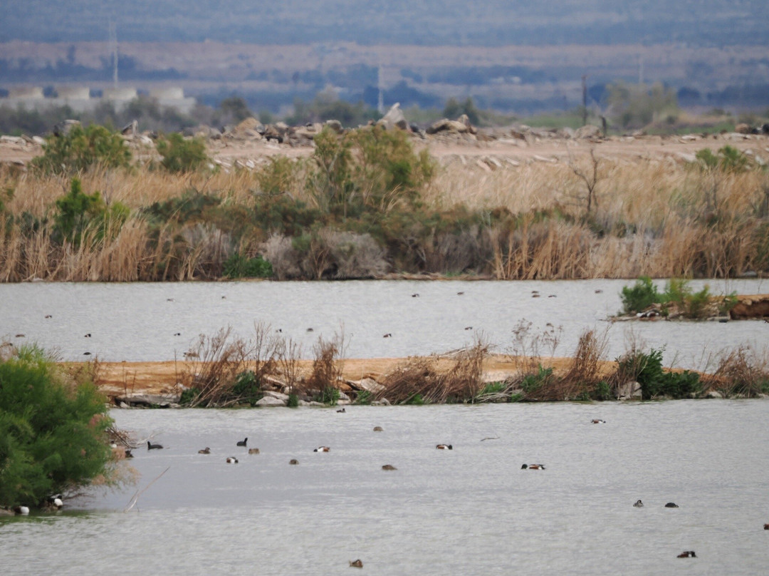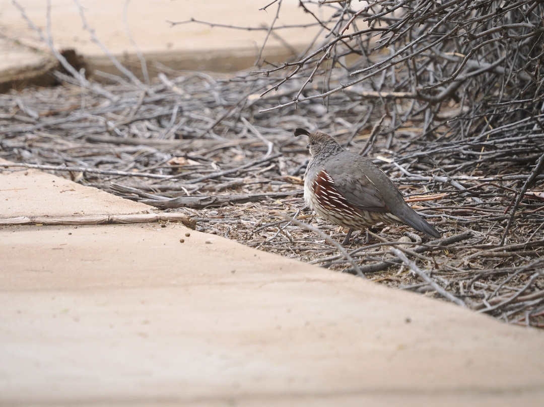 点评:Sonny Bono Salton Sea National Wildlife Refuge lived up to its reputation as a birding hotspot even though we had missed the large flocks of migrating waterfowl including the snow geese and Canada geese which had already departed. The birding began upon arrival while checking out the Visitors Center where we saw several Gambel’s quail running around. Along the path taking us to Rock Hill we saw Abert’s Towhee and Verdin. A Northern Harrier took a low pass over us. There were still many waterfowl in the ponds but those were off-limits to visitors and we had to make do with binoculars and zoom lenses. Given the distance heat shimmer degraded the quality of clarity of our view and the sharpness of the pictures taken.