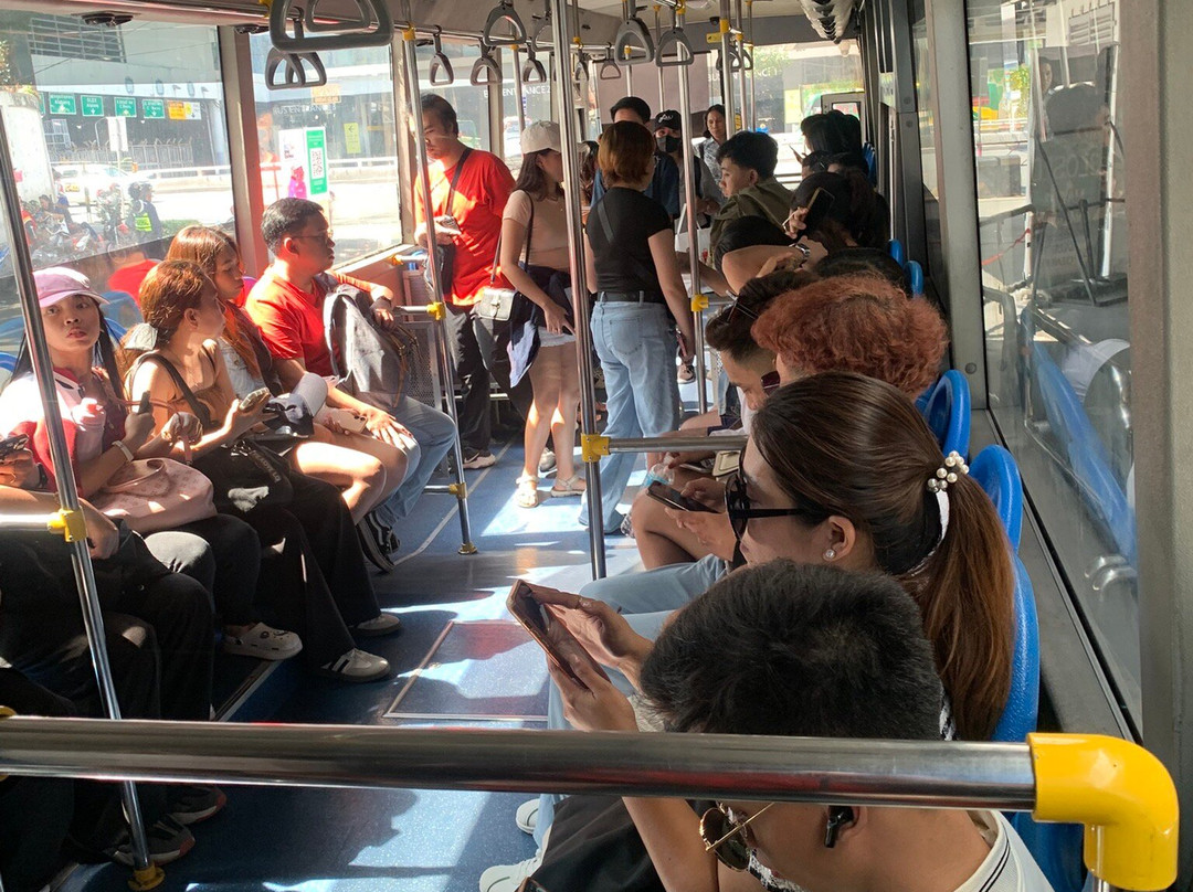 点评:今日はBGCタウンに出掛けてみることにしました。ホテルの前からジプニーに乗車してタフト駅まで行き、ライトレールでアヤラ駅に向かいます。路線バスを使うのはハードルが高いかなーと思いながらも、せっかく来たのでGrabは使わないで冒険してみようと、ホテルからジプニーと電車とバスを乗り継いでBGCに向かいました。アヤラ駅に着くと、SMマカティやグロリエッタとは反対側の出口からブリッジを渡って、階段を降りるとすぐに小ぶりなバスターミナルに着きます。ジョリビーが目印です。BGC行きのバスは現金では乗車できず、乗車時に改札でアプリかbeepカードによるキャッシュレス決済をしてから列に並ぶ必要がありました。マニラ滞在地のライトレールでの移動を考慮してbeepカードを買っておいて良かったです。beepカードに事前にチャージしておくと、駅のキップ売場や券売機の列に並ばなくて済み、またライトレールには割引運賃で乗車できたり、一部のコンビニ等のレジでの支払いにも使える便利なカードです。