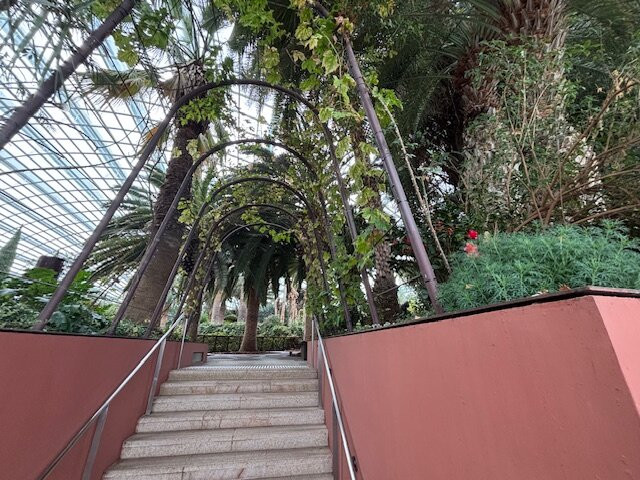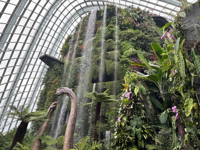 离开之后,我们趁机在场馆之间的餐厅吃了顿早餐。之后我们去了花穹,里面植物种类繁多,按全球区域划分,非常壮观。说实话,除非你对植物特别感兴趣,否则我建议先去花穹,然后再去云雾林,因为云雾林才是真正的亮点。