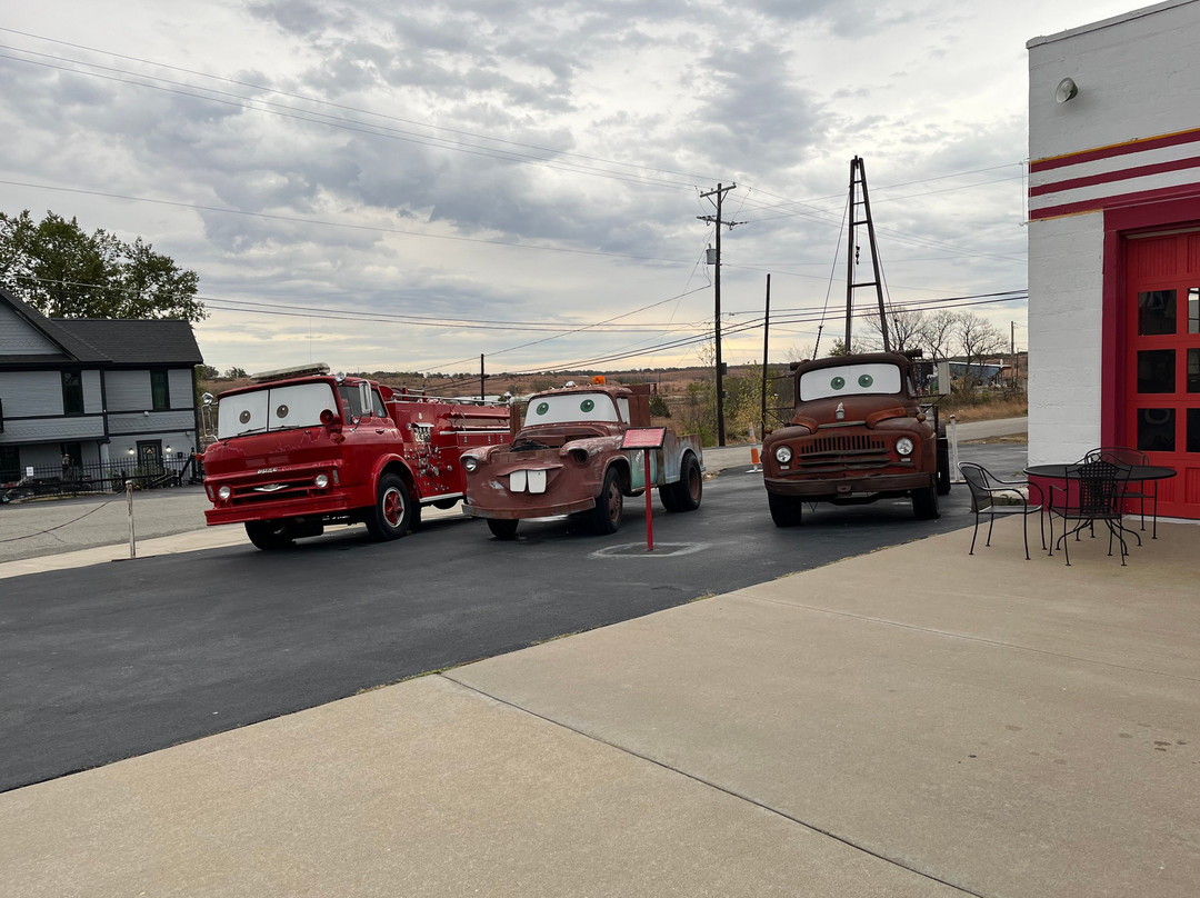 点评:Like some other reviews below, we arrived here in the evening on a Sunday and the inside was closed. Honestly, we didn't really know too much about this place and had never seen the movie "Cars" which is basically the story of the demise of Route 66 starring Tow Mater, the truck that drives backwards. The truck was the inspiration for the animated character as well as the police car nearby. We stopped at Nelsons Store in Riverton and Mr. Nelson told us the complete story of when the Pixar writer came and interviewed people looking for ideas along Route 66. The reason that Tow Mater drives backwards all the time was inspired by a man who can turn the lower part of his legs around and walk backward. The Hudson car in the movie is located down the road as you come in from the south at GearHead Curios with the "A" giant standing on the side. I've talked in some other reviews about how long it takes to drive Route 66 and this town is great example; you could spend a full day here taking photos and going to the museum and visitor center. This really is a good photo opportunity, stop down below and see Luigi's shop and the police car. They made a Route 66 drive-under thing to frame your car like the one located in Kingman, Arizona. They had not put the lettering on it when we visited, but said they were raising the funds to do so. If you are heading east, go on the original Route 66 and take a picture at the state line of Missouri. We had dinner at Woody's Pizza in Joplin, Missouri and it was good; that's another example of a business bringing Route 66 back to life. We enjoyed our time here and the murals in Galena are great as well.