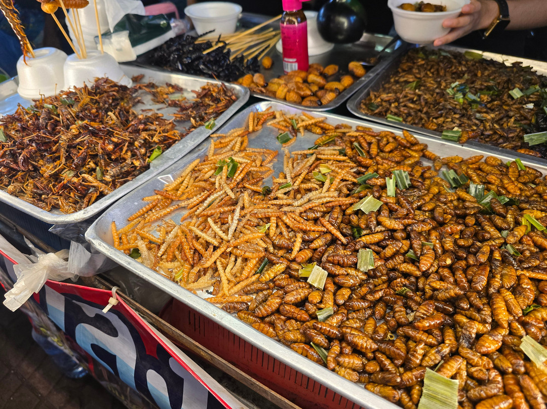 在耀华力路巷(Soi Yaowarat)上,你会发现一些更便宜、更奇特的商品。还有一些油炸昆虫,比如蜘蛛和蝎子。这更像是游客才会点的东西。不过,如果你喜欢的话……