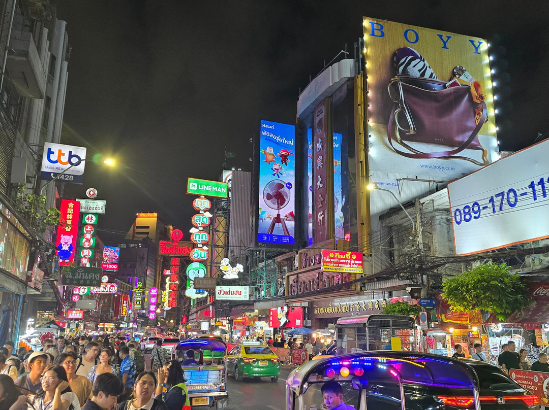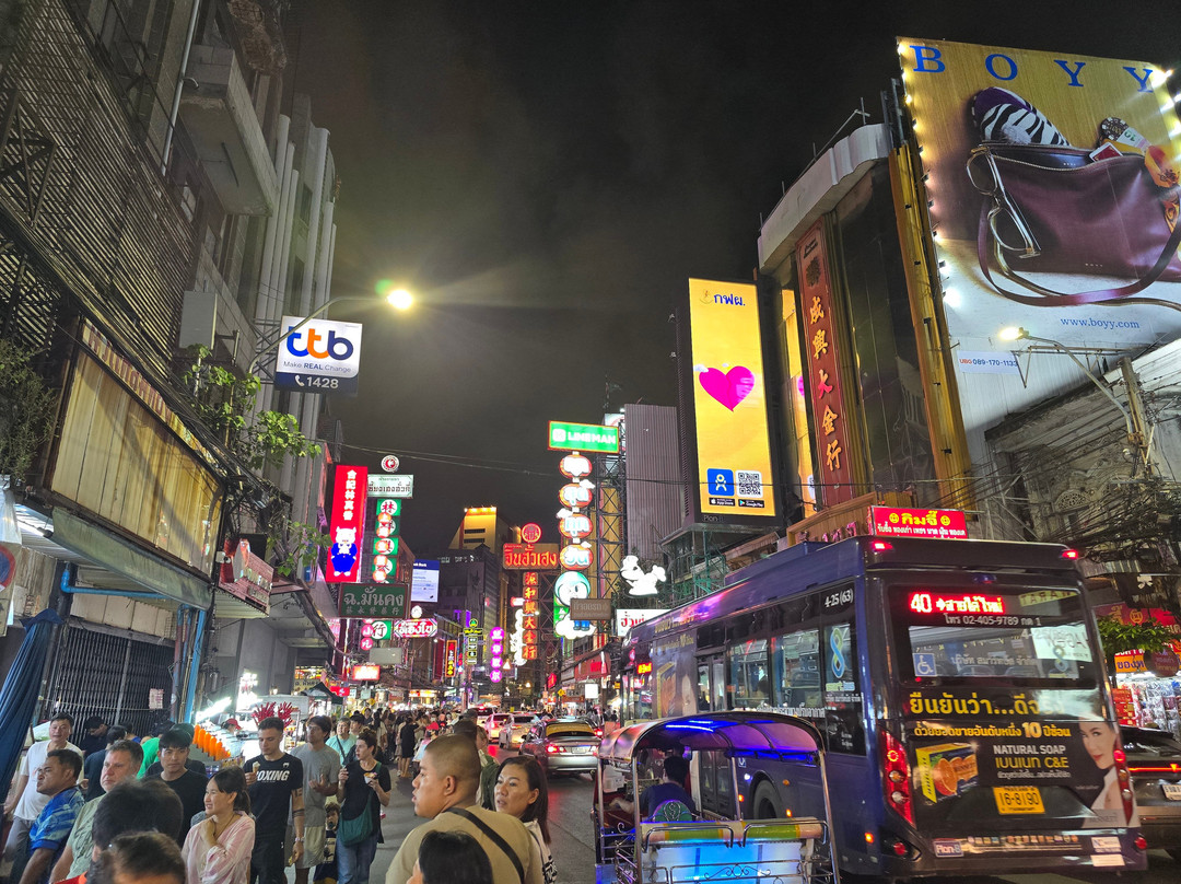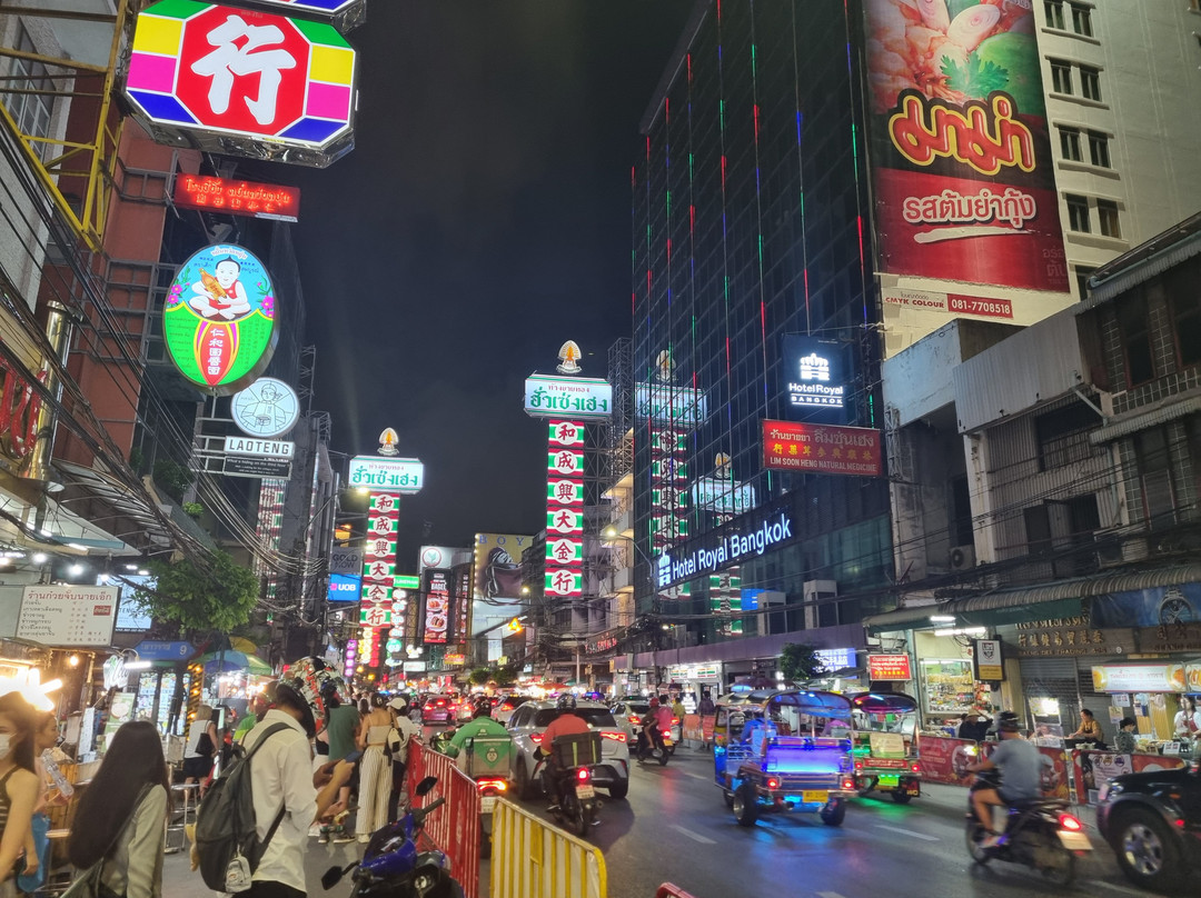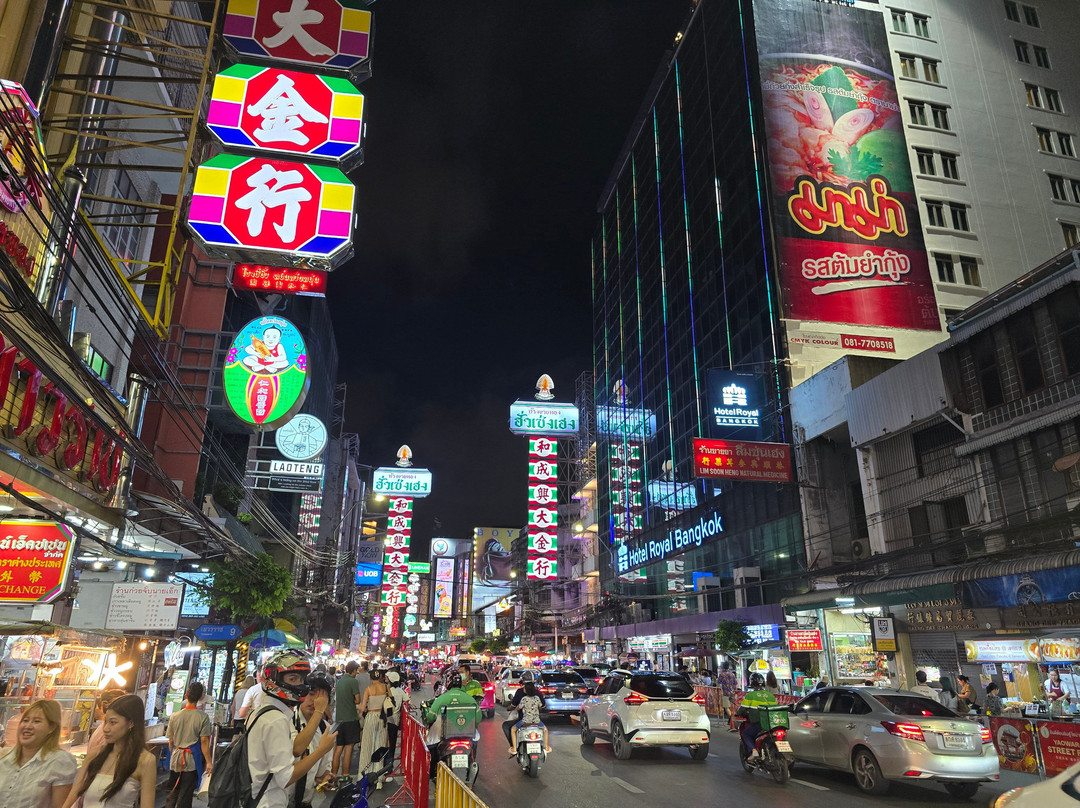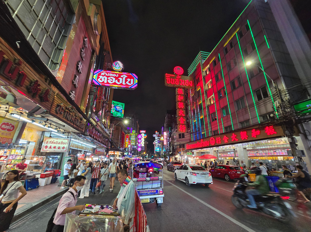 大部分热闹的景象都集中在耀华力路(Yaowarat Road)上。这里喧闹拥挤,熙熙攘攘,到处都是餐厅、商店和小吃摊。当然,还有熙熙攘攘的车流。这里灯火通明,色彩缤纷,充满了乐趣!