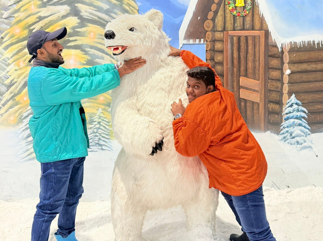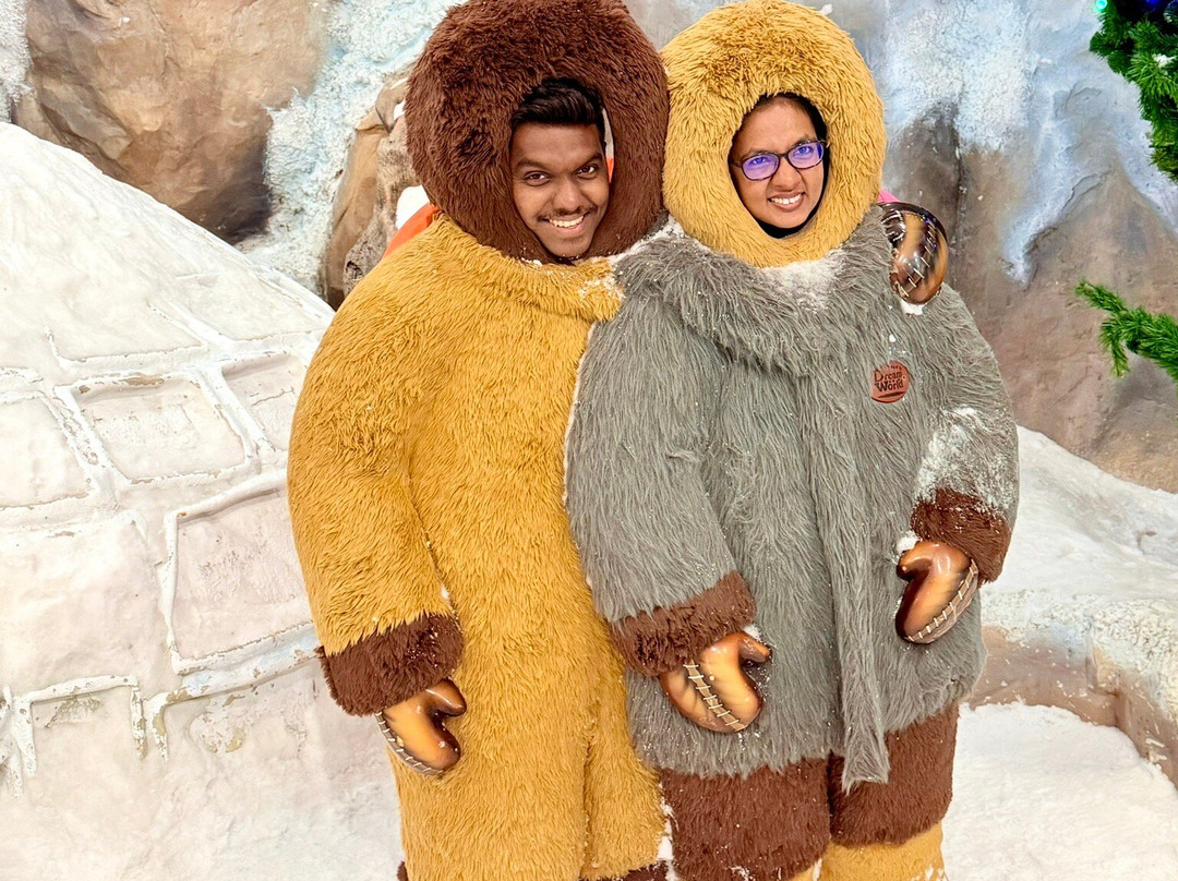 亮点之一是雪城❄️——这是我们第一次体验雪景!完全不用排队,而且进去之前工作人员还给我们提供了外套和靴子。里面冷得要命,我们玩得很开心,堆雪人、接飘落的雪花,在美丽的雪景里拍照。📸