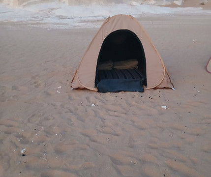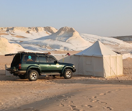 Il Governo egiziano non consente la realizzazionedi campi fissi, proprio per preservare questo luogo cosi' particolare, per cui la guida si occupera' di allestire il campo e preparare un ottima cena e colazione. Dormire tra le formazioni calcaree e sotto un cielo stellato, con solo il rumore del vento sulla sabbia e' un'esperienza indimenticabile