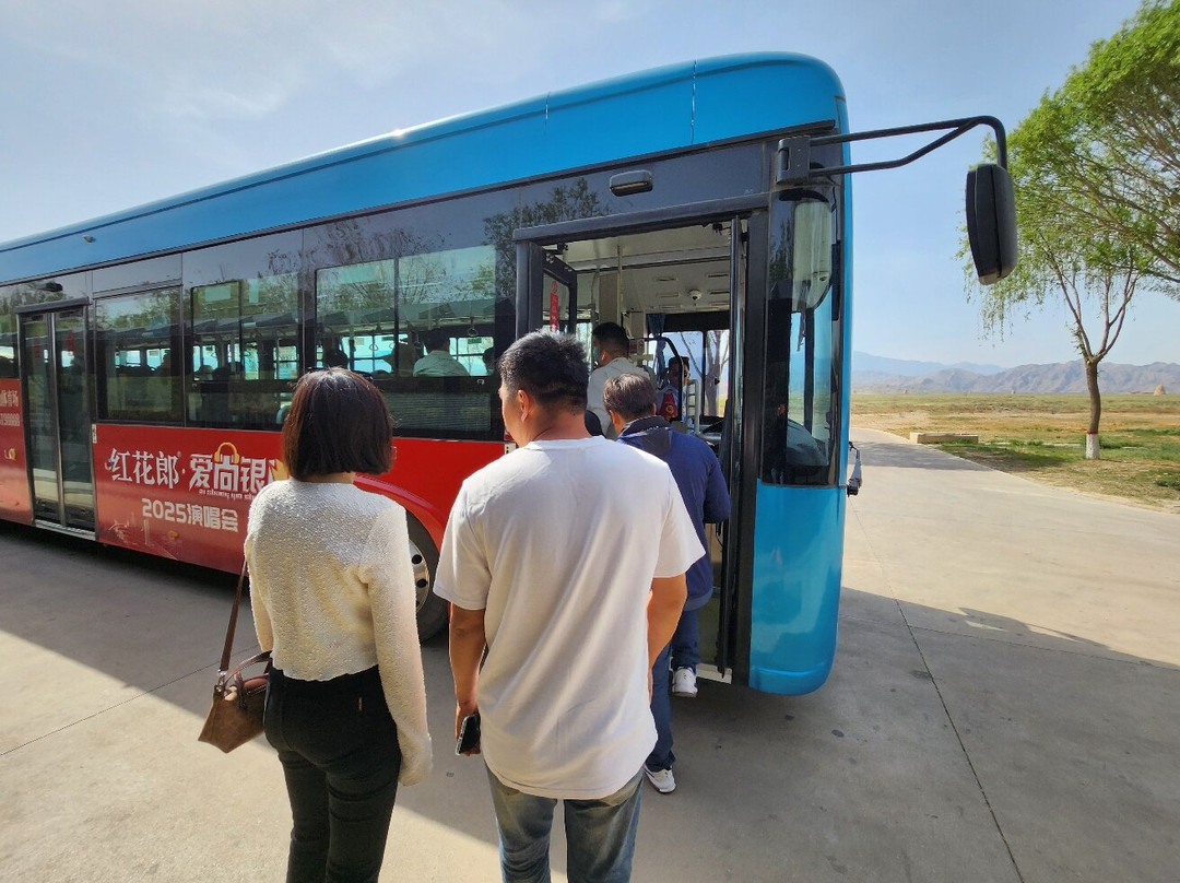 翻译:银川站有直达的班车,不过包含在贺兰山岩画的行程里。我通过微信预约了8:50银川站出发→10:00后到13:10岩画→14:00后到18:00西夏王陵→19:00左右银川站。