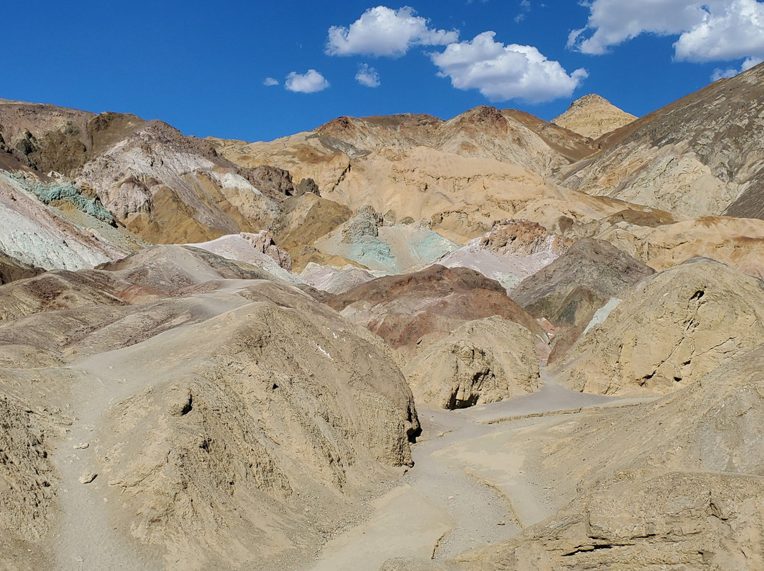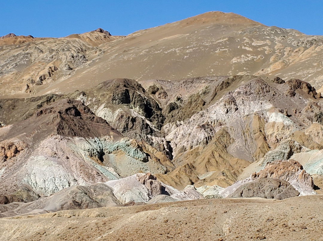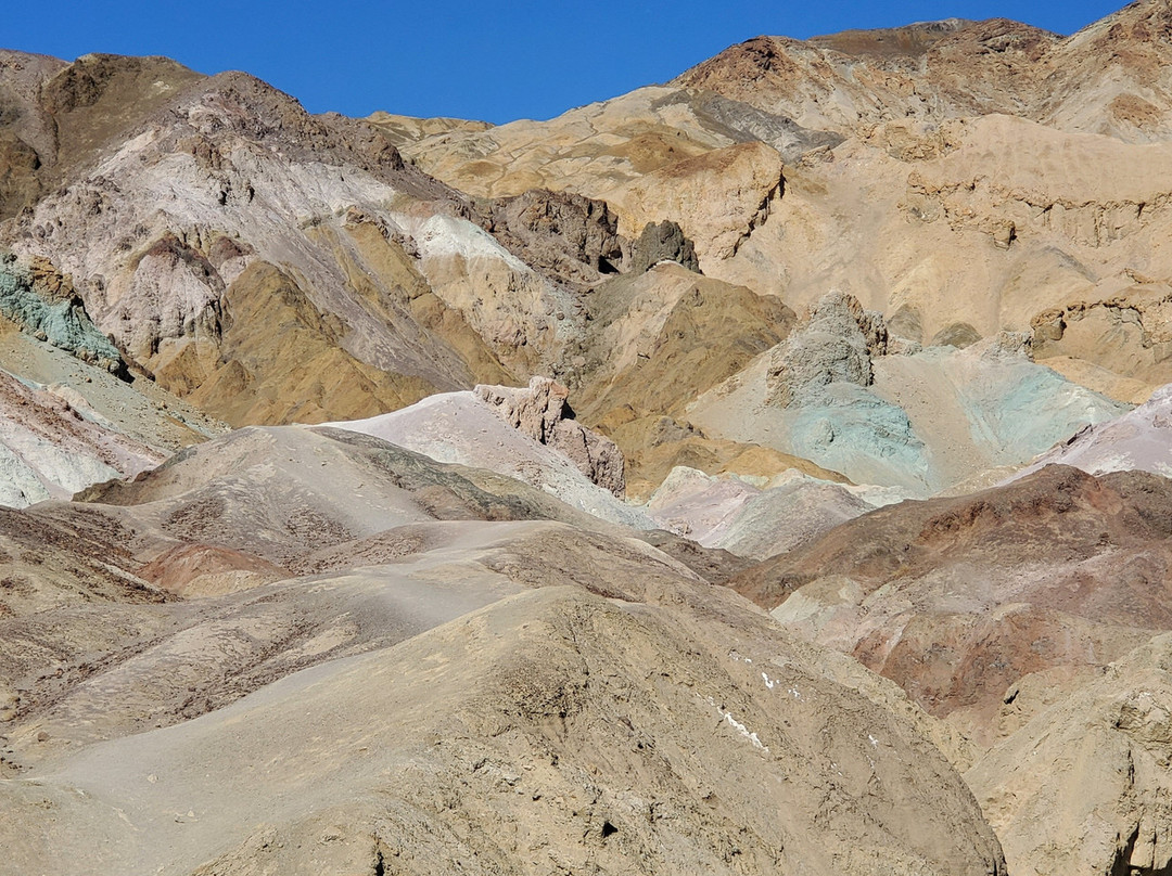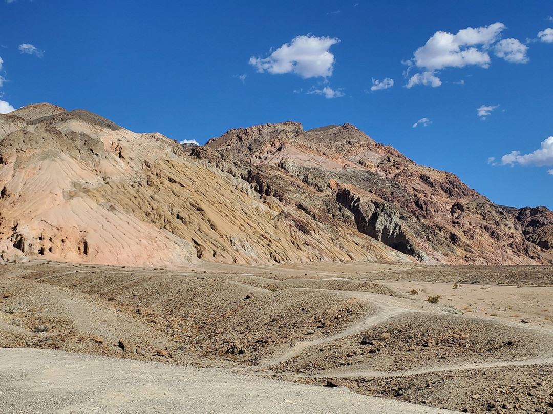 点评:Go to Badwater Basin first. Then, afterwards embark on your nine mile journey through Artist's Drive which is a one-way only road. Know and understand beforehand that you will not be able to traverse this scenic drive with your recreational vehicle (RV) or trailer exceeding 25 ft. Bring lots of water and a wide-brimmed hat for your protection and possibly survival. If you have less than half a tank of gas in your vehicle and you decide to make this drive, you are not thinking clearly and are ill-prepared. If a vehicle is driving too close to you because they are in a hurry for life or racing off to go see the next site, safely pull over and let them pass. Take your time to really enjoy this area. Allow 1 hour to explore.