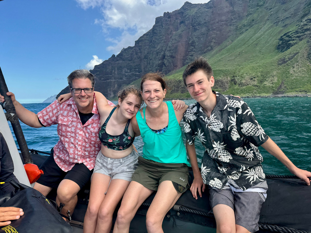点评:My family of four was all signed up for the Zodiac expedition as our first full day in Kauai. (A 20-year bucket trip.) We made it an hour in when Captain Jake called it. The waves were just too rough. During that short time we saw beautiful Spinner Dolphins. Unlike with other companies, we were given the option of a full refund (parking included!) or if possible due to space, rebooking. When we re-docked my teens immediately we requested to rebook. We ended up rebooking for the final day of our holiday for a shortened excursion, and it was exceptional. We saw Spinner Dolphins (again!), entered caves, faced choppy waters with music and fun, and felt entirely safe under the leadership of Captain Rebecca and her deckhand Izzy. My 15-year-old daughter in particular thought it was amazing to have two females crewing the zodiac. The snorkeling was fantastic (I snorkeled with a giant sea turtle!), we ate snacks that were provided, and had the privilege of seeing the beauty of the caves from the inside - a place where many boats can’t go. Going in the caves and being up close was an incredible treat. As a professional risk manager, I felt exceptionally safe for the entire duration and filled with joy and gratitude. This trip was the perfect bookend to a beautiful and healing week. I would highly recommend!