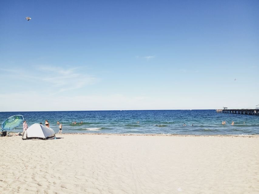 The beach is clean, but is not very wide but is long in length, there are some small shells and also jelly fish walking along the beach by the water. There is no boardwalk, we just walked through the sand by the water getting our feet wet only, but did not set up to sit on the beach. The beach shows a pier that is split, which looks interesting near the public access area, near commercial street. If you like a boardwalk kind of beach, this is not going to be what you want, but it's not bad at all, very nice and private like environment. We didn't see anyone renting out chairs and umbrellas to those on the public access side, but perhaps those things are choices if you are staying at a hotel that is located directly on the beach. Anyway, it was just an okay beach in my opinion, the strip of stores on commercial street make it worth going to the beach over there with the public access.