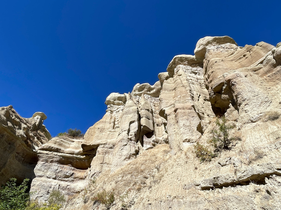 在鸽子谷,主路会带您穿过凝灰岩顶部的建筑物,这些建筑物形成了仙女烟囱。这里也有一些仙女烟囱,类似于您在爱情谷、玫瑰谷和红谷等地经常看到的仙女烟囱,这些地方也离格雷梅很近。鸽子谷以几个世纪前的鸽子养殖而闻名,您仍然可以看到当时活动的明显痕迹,比如悬崖边雕刻的小型鸽舍和形状更精致的仙女烟囱。