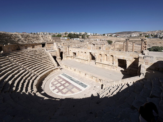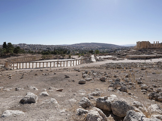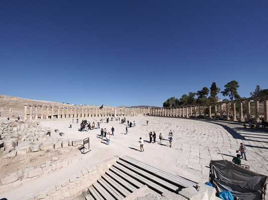 翻译:在我们约旦之旅的所有景点中,杰拉什是最令人惊喜的,也是最让我着迷的地方。可惜的是,这座重要的罗马古城的大部分遗址都被现代房屋掩埋,但已发掘出的约20%的区域——很可能包含了最重要的建筑——依然令人叹为观止。这里无需一一列举,因为每一处都美轮美奂,遗址保存完好,足以让游客沉浸在昔日的氛围中:尤其是那些宏伟的剧院、柱廊环绕的街道,以及被柱子环绕的、难以言喻的椭圆形广场。由于遗址面积广阔,几乎每走一步都会忍不住驻足欣赏,因此参观需要花费一些时间。游览路线并不算难,大部分路段平坦,只有几处短小的坡道和台阶,但几乎没有遮荫的地方,所以建议携带帽子、防晒霜、水,当然还有适合在土路上行走的舒适鞋子。