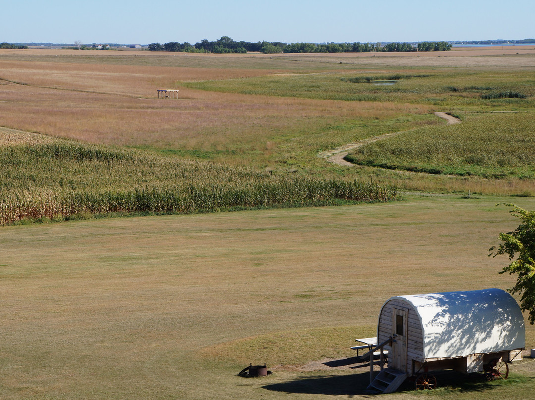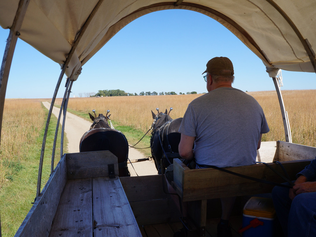 点评:We aren't really joiner in type people but we ended up making rope and a corncob doll and taking a covered wagon ride (we were the only ones on it and both got to "drive" the horses - they knew what to do all by themselves). Everyone who works there is super friendly and knowledgeable about the Ingalls family - they even read little excerpts from the books to us so we could relate what we were doing to the Ingalls' experiences. I read the books a lot as a kid so it was really cool to see the actual land and set up for Laura's teenage years. There is also a memorial there that is accessible from the road but fenced off from the homestead site (I went through a split rail fence to reach it) where there are five cottonwood trees actually planted by Pa. How cool is that? You could see the size and set up of the Ingalls' house and sod roofed barn and see examples of a dugout and shanty house and one room schoolhouse. One of the highlights was there were two super friendly kittens there who just came running up to be held. There were also ponies (and a baby pony), horses, chickens, and a calf only a few weeks old. Absolute must for kids who are fans of the books but really cool as an adult too.
